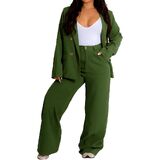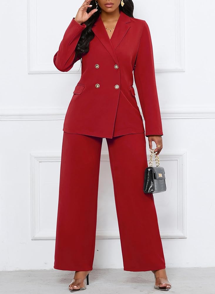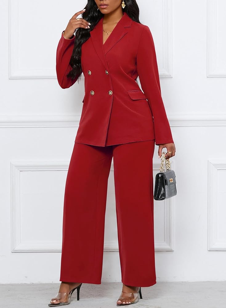 Features:This set includes a long-sleeved blazer jacket and loose wide-leg pants. With a lapel collar, double-breasted closure, padded shoulders, and an adjustable waistband on the back of the Palazzo pants, it's designed for practicality. Both the blazer and pants feature pockets and a simple yet elegant design