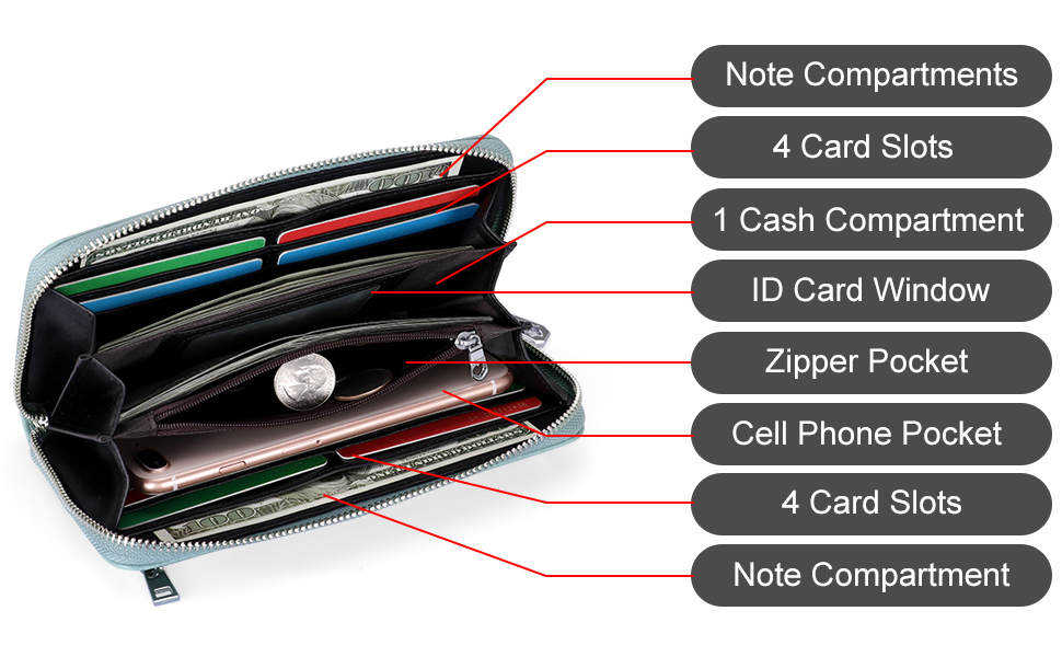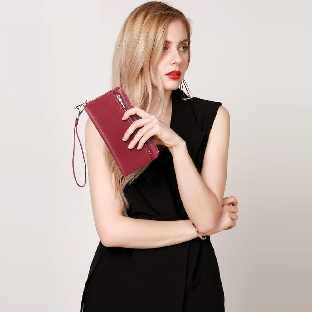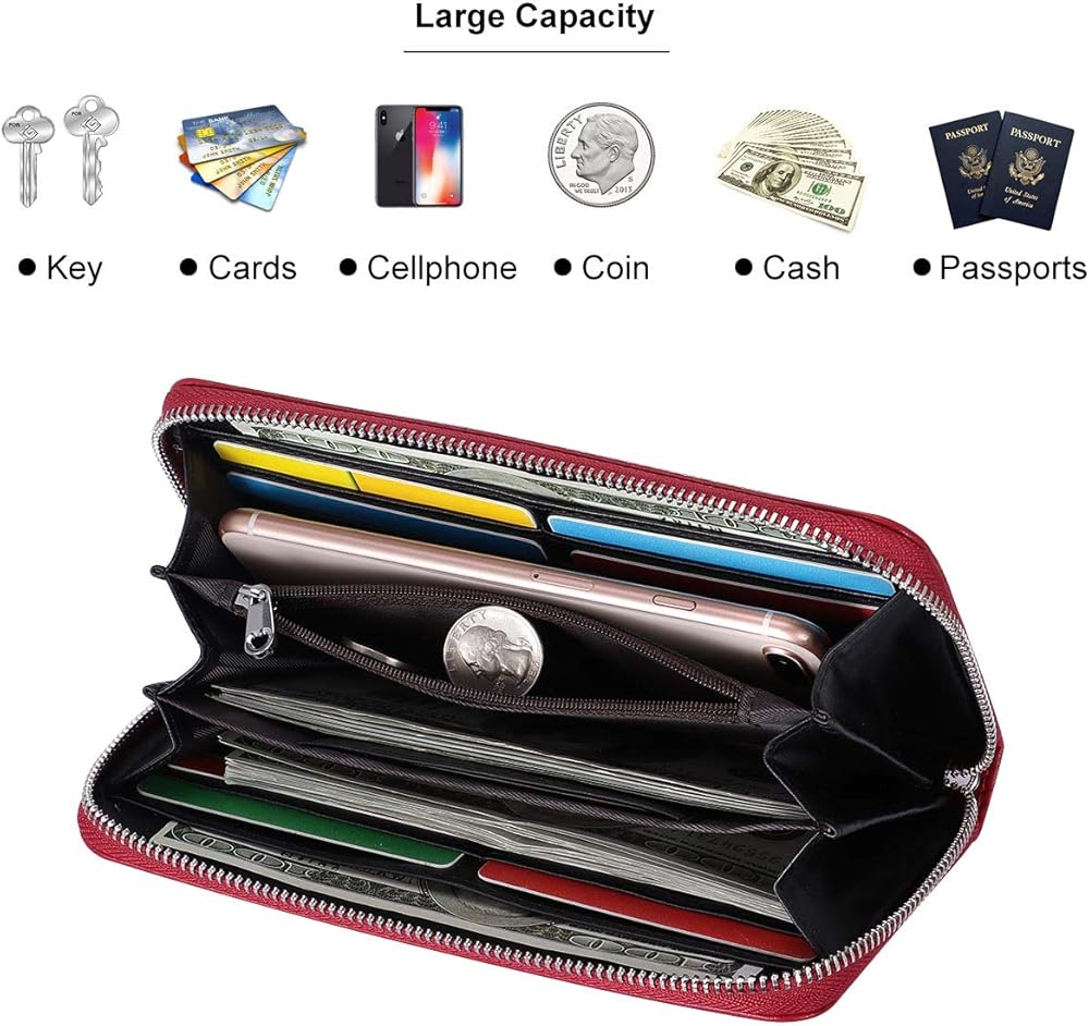 جلد أصلي عالي الجودة وسحاب - هذه المحفظة النسائية مصنوعة من جلد أصلي عالي الجودة مقاوم للخدش، فاخر وأنيق، والسحاب المعدني الفضي ذو العلامة التجارية الأعلى قوي وسلس للغاية.