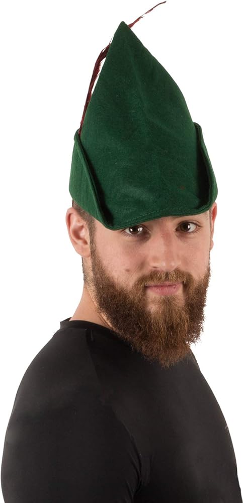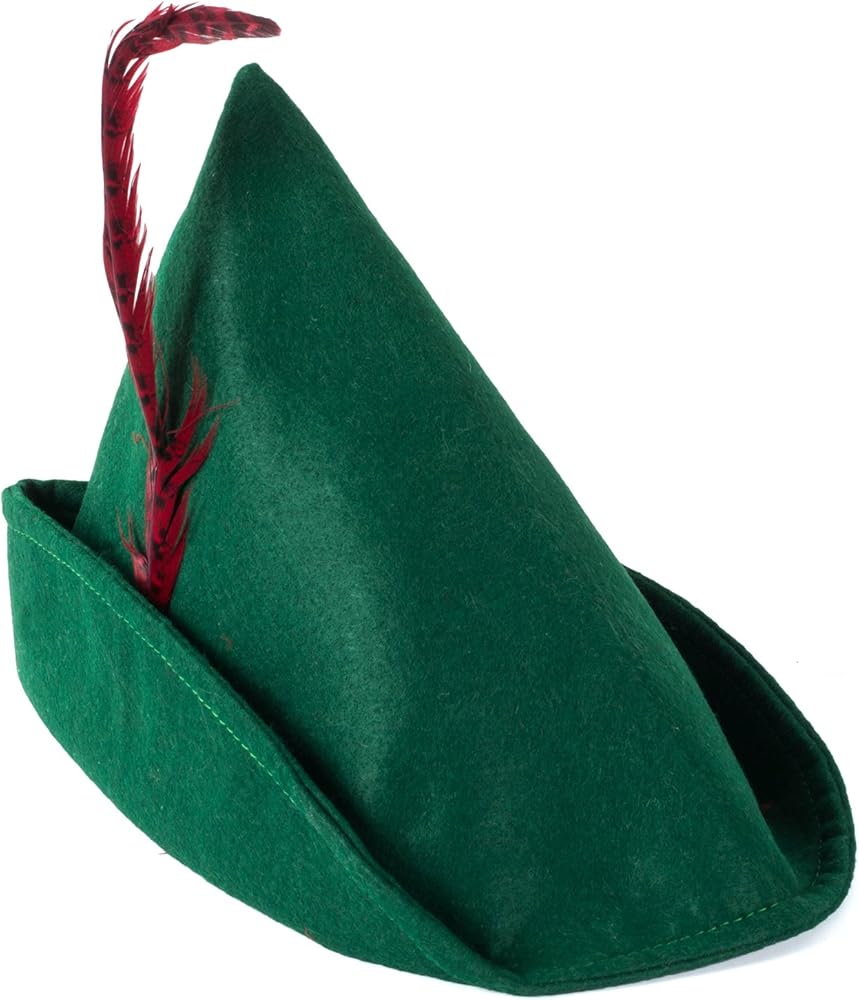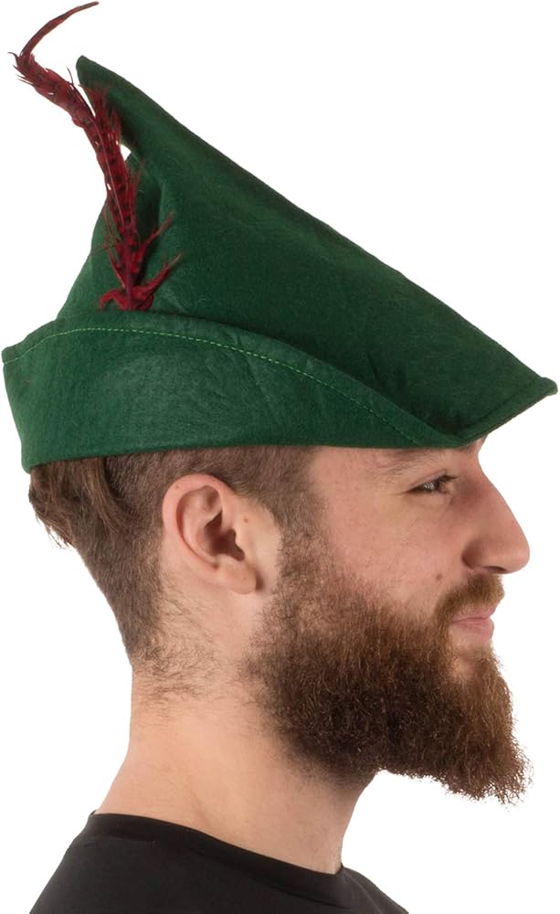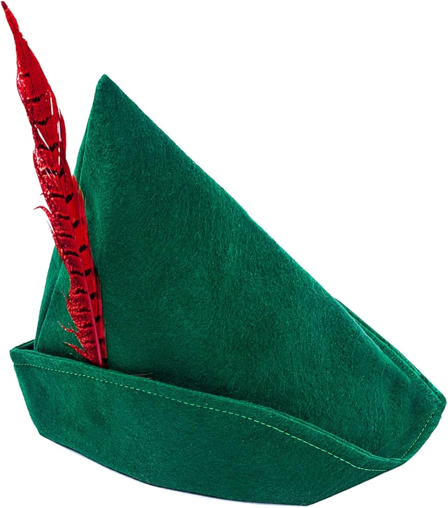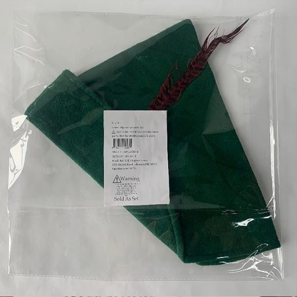 • تحتوي هذه القبعة الخضراء للغابات على ريشة حمراء طويلة مخيطة في القبعة. إكسسوار رائع للأزياء!