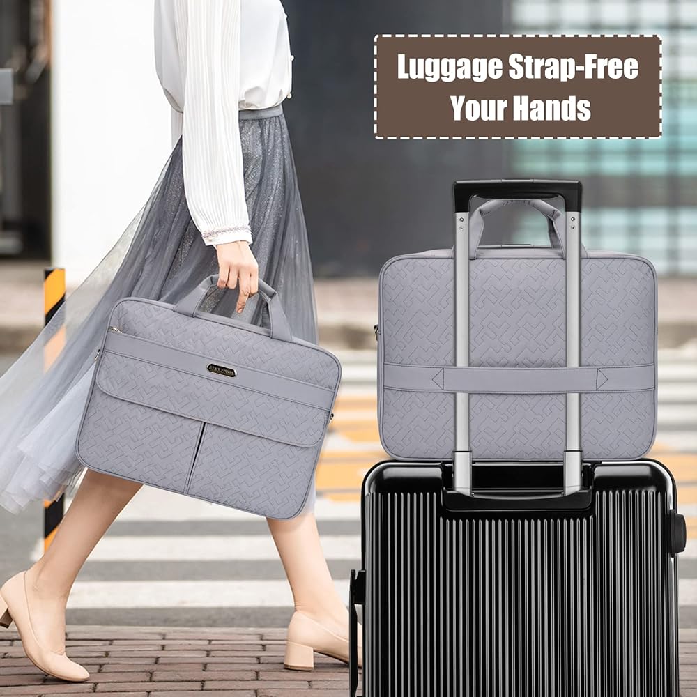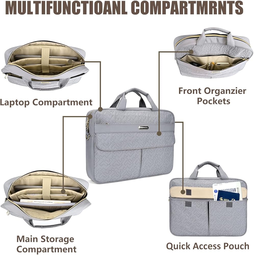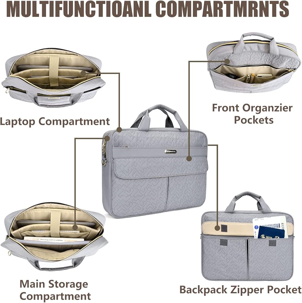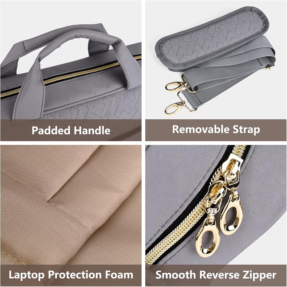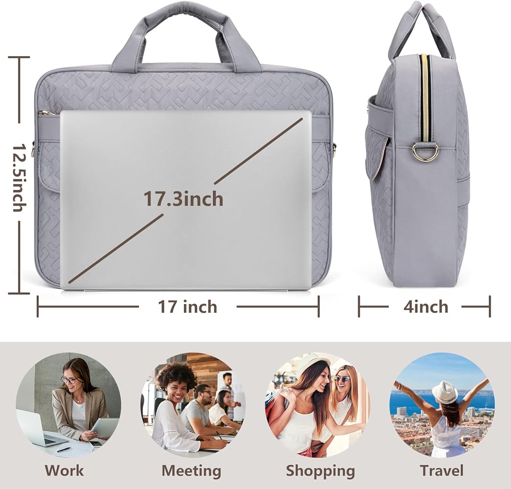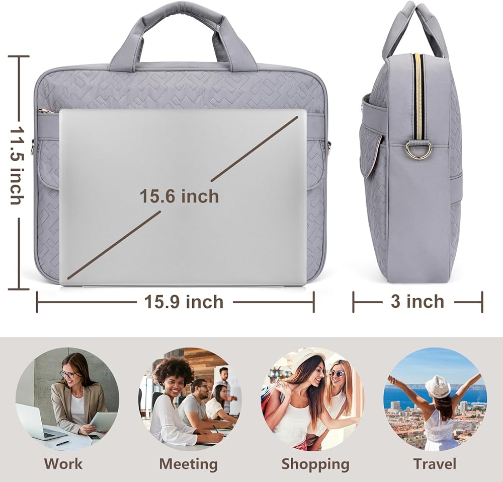3 × ارتداء مريح: يمكن حمل حقيبة الكمبيوتر المحمول النسائية هذه كحقيبة كتف أو حقيبة يد أو تعليقها على الأمتعة. حزام كتف مبطن قابل للفصل وقابل للتعديل (35.8-65 بوصة) يساعد على أن يكون حقيبة كتف للكمبيوتر المحمول. يمكنك أيضًا تحريك حقيبة الكمبيوتر المحمول الخاصة بك فوق أنبوب الحقيبة لتحرير يديك. يجلب لك الراحة في مناسبات مختلفة.