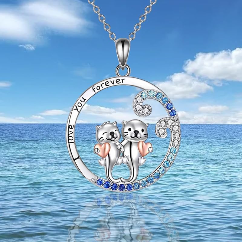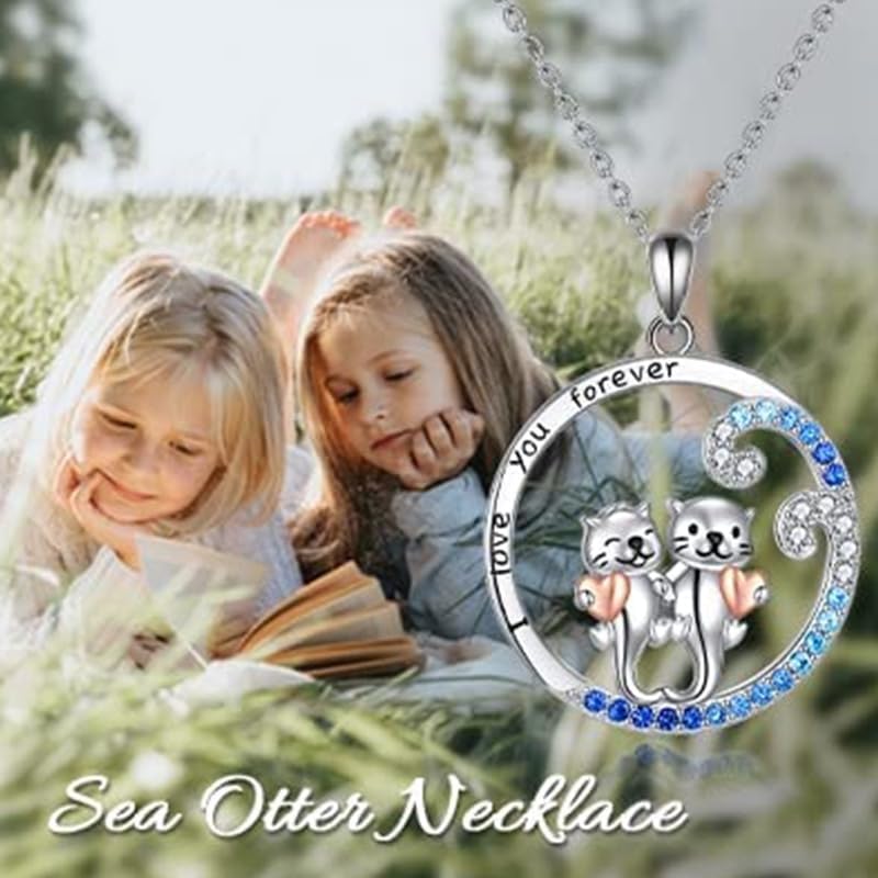 ⭐⭐ قلادة Otter: 1.18*0.82 بوصة. طول السلسلة: 18 + 2 بوصة سلسلة تمديد. معبأة في صندوق هدايا أنيق، مثالية للتقديم أو الحفاظ على الأمان.