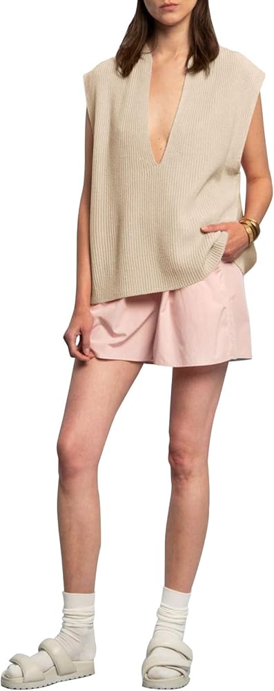 المزايا: صورة ظلية مريحة، نسيج مضلع، خط رقبة عميق، لون موحد، قمصان علوية بدون أكمام للنساء، قمصان علوية بأكمام قصيرة للنساء، سترة سترة برقبة عميقة على شكل حرف V، سترة علوية عصرية بدون أكمام للنساء.