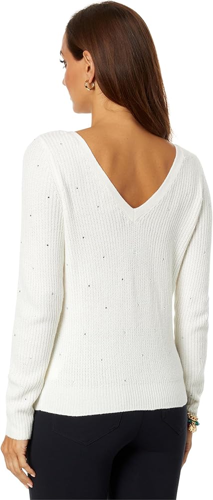 Embrace the cozy vibe and exquisite style as you step out wearing the Lilly Pulitzer Anna May Sweater during wind chills. The ribbed-knit sweater is designed to offer a relaxed fit and features a boat neckline, long sleeves, and a straight hem. Pullover style. 57% cotton, 28% acrylic, 15% polyester. Dry clean.