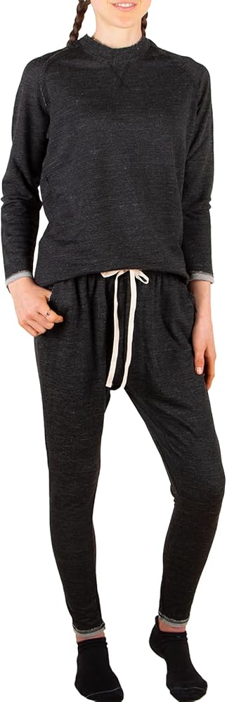 سراويل الاسترخاء النسائية لدينا مصنوعة من سويت شيرت سميك بوزن 300 جرامًا للمتر المربع 100% من ميرينو تيري