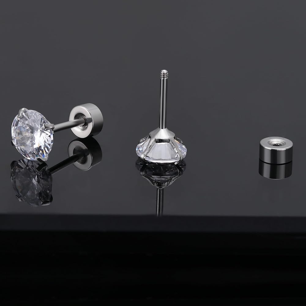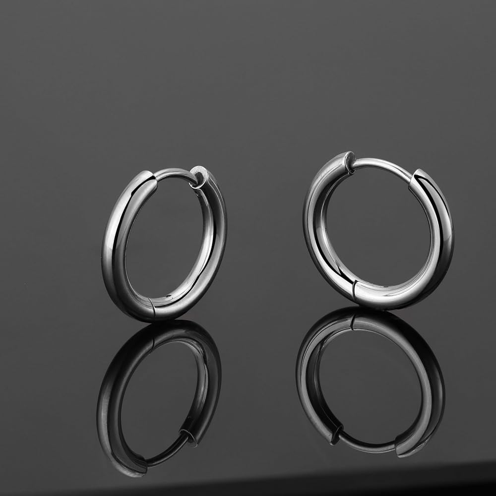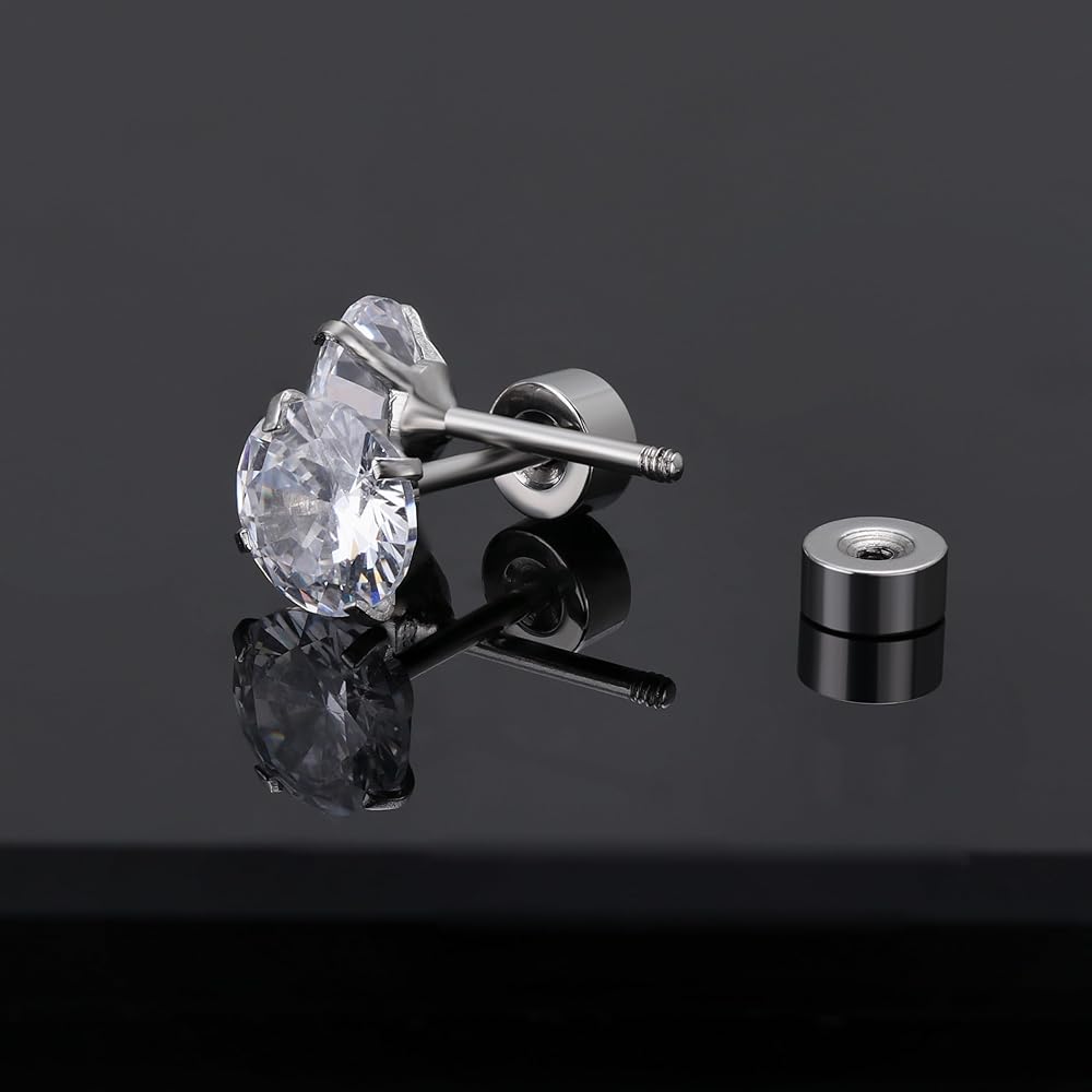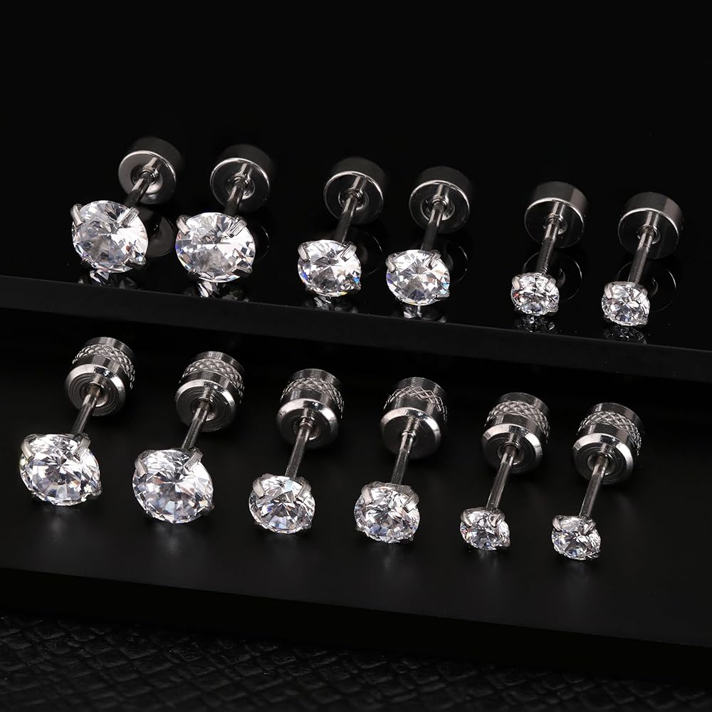 10 ازواج من الاقراط الفضية المصنوعة من الستانلس ستيل، مجموعة اقراط للرجال والنساء مع مرصعة بالزركونيا المكعب ومربع من الستانلس ستيل ومربع بحجر ابيض كريستالي