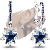 أقراط النجمة الزرقاء للنساء - أقراط هوجي من الفضة الإسترلينية لا تسبب الحساسية، أبيض أزرق داكن مكعب زركونيا، أقراط على شكل نجمة القمر، مجوهرات هدايا للفتيات المراهقات لعيد الميلاد