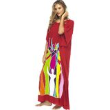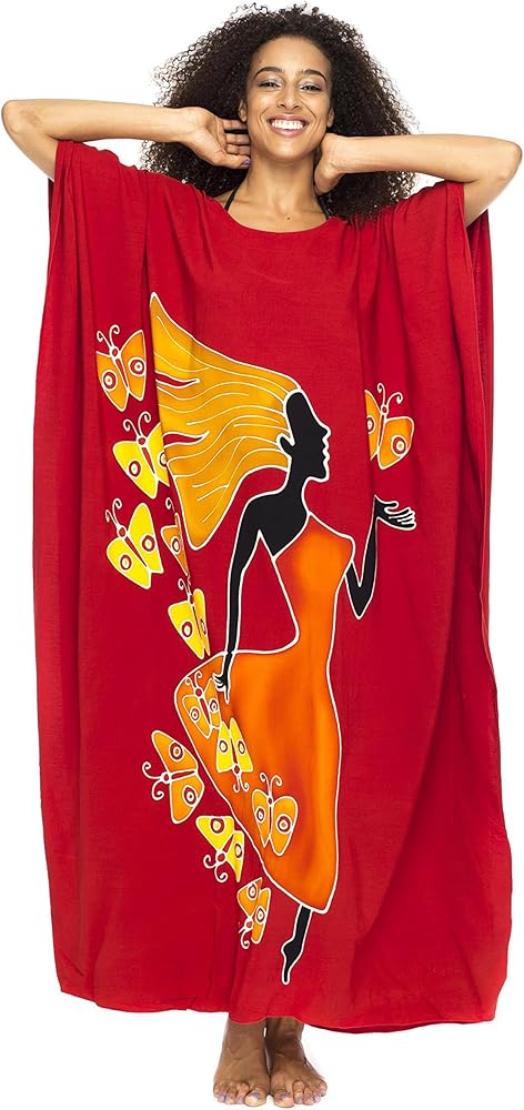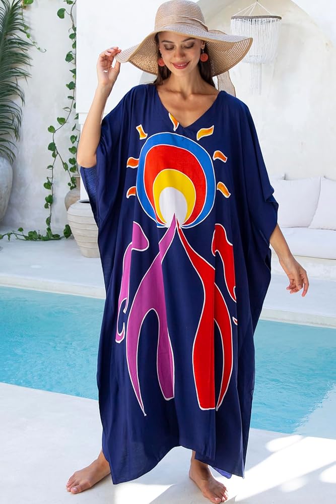 مريحة وأنيقة بشكل فريد. إذا كنت تحب التصاميم الفنية فسوف تحب قفاطيننا. تم قصه بسخاء بطول 57 بوصة وعرض 36 بوصة، هذا الفستان الطويل الأنيق جذاب على جميع الأشكال. مع الألوان الغنية النابضة بالحياة، يعد هذا الفستان الطويل فنًا يمكن ارتداؤه حقًا