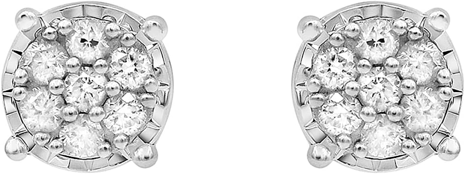 STUNNING ROUND DIAMOND STUD EARRING: Attract all eyes with this elegant round-cut diamond stud earrings made from 10K White Gold. Featuring the round-cut, these earrings are set with illusion setting in Miracle plate for a sturdy and balanced look. A simple yet elegant design, this beautiful earring makes a perfect choice for your partner! The 1/10 carat diamond studs coupled with the white gold make for a fine, ultimately timeless piece of jewelry.