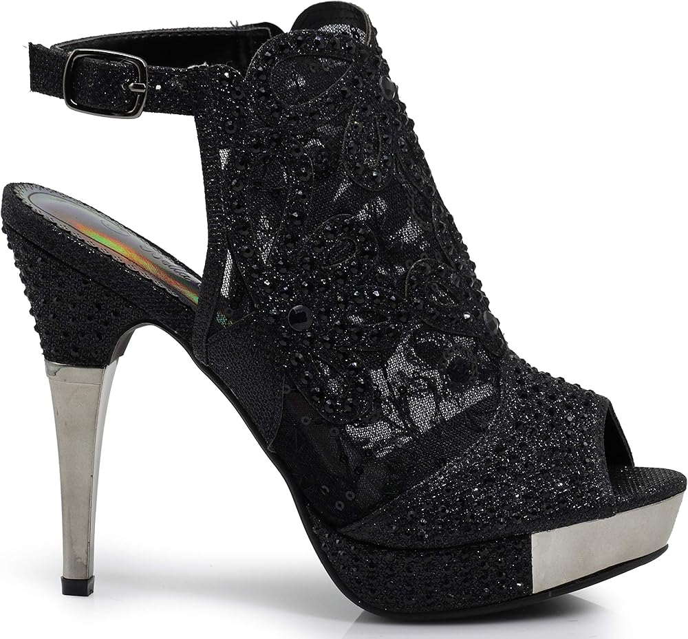 women's rhinestone High heel sandals, with sling back design, open toe, mesh and rhinestone material give a sexy look, great match for any dresses.