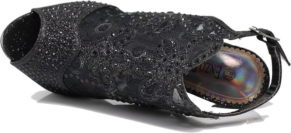 انزو روميو Angie15 إمرأة مفتوح اصبع القدم عالية الكعب الزفاف شبكة مرصعة بأحجار الراين حبال الظهر صندل حذاء بكعب ويدج