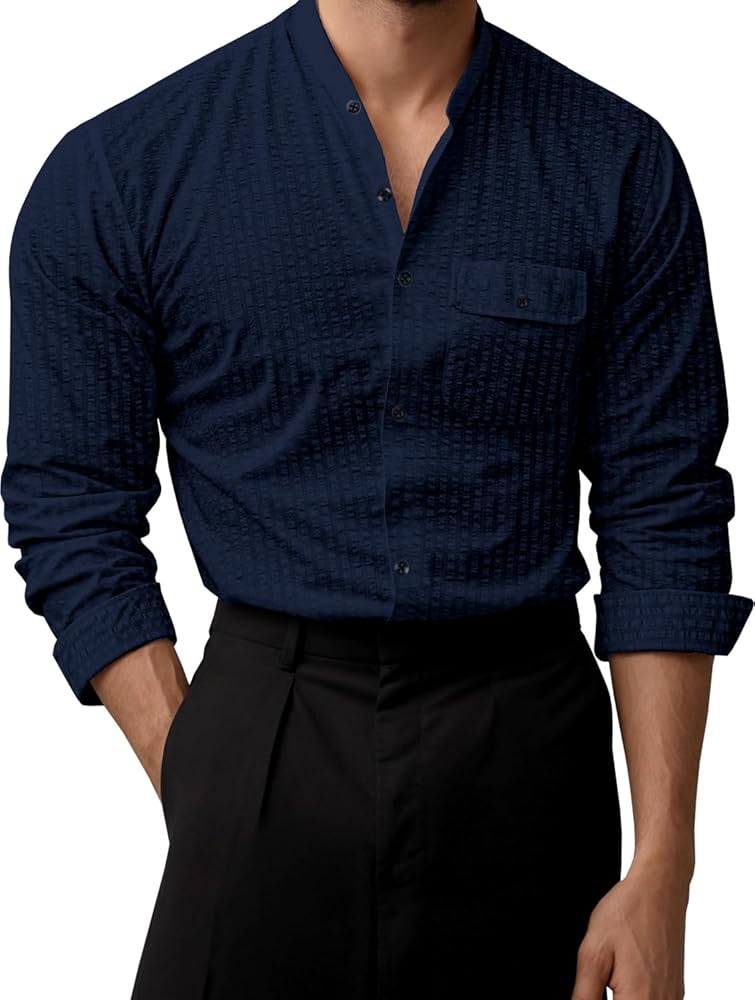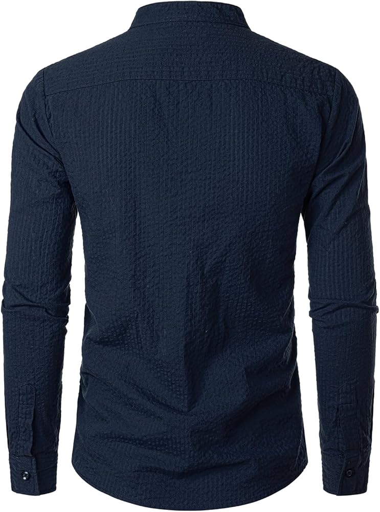 • المطابقة: القمصان القطنية الفقاعية متعددة الاستخدامات، وهي مكمل مثالي لكل خزانة ملابس رجالية عصرية، والتي يمكن أن تتماشى بسهولة مع تشينو أو الجينز أو السراويل البدلة وما إلى ذلك.