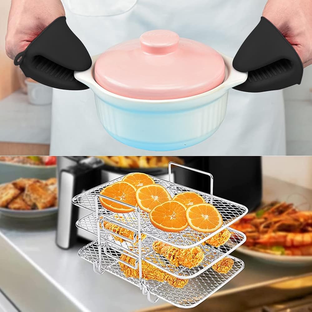 【ما ستحصل عليه】تتضمن العبوة قطعة واحدة من رف المقلاة الهوائية، وقطعتين من قفاز الفرن وقطعة واحدة من ملقط الطعام، مجموعة عملية لاستخدامك.