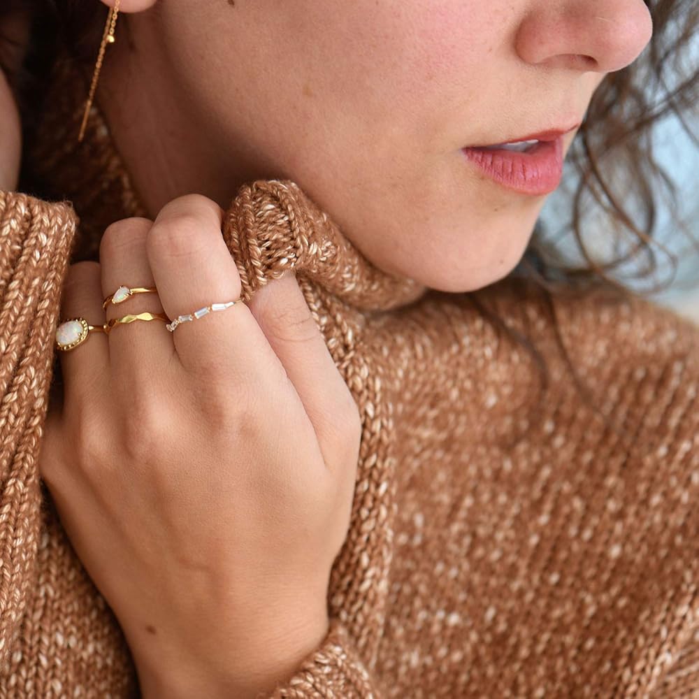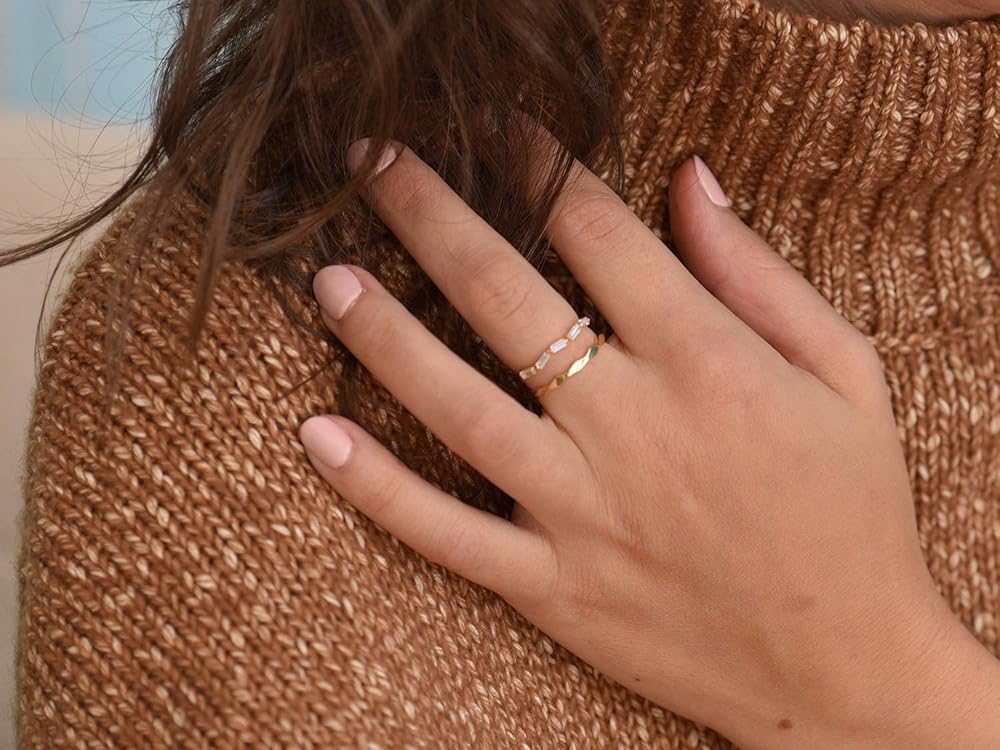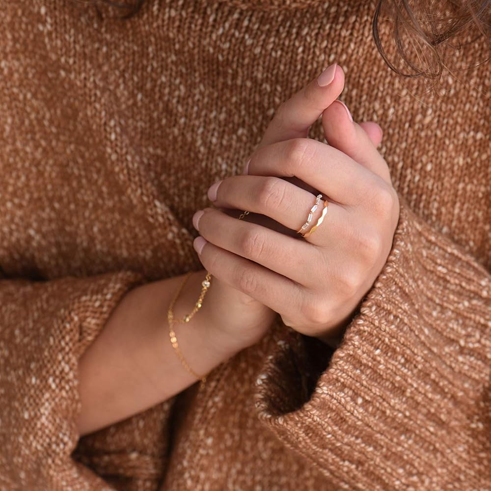 بلوسوم آند هيو ميني باجيت إيتيرنيتي باند | لا يسبب الحساسية مطلي بالذهب عيار 18 قيراط .925 | خاتم ذهب لذيذ | العنقودية تشيكوسلوفاكيا الرغيف الفرنسي التراص الدائري