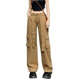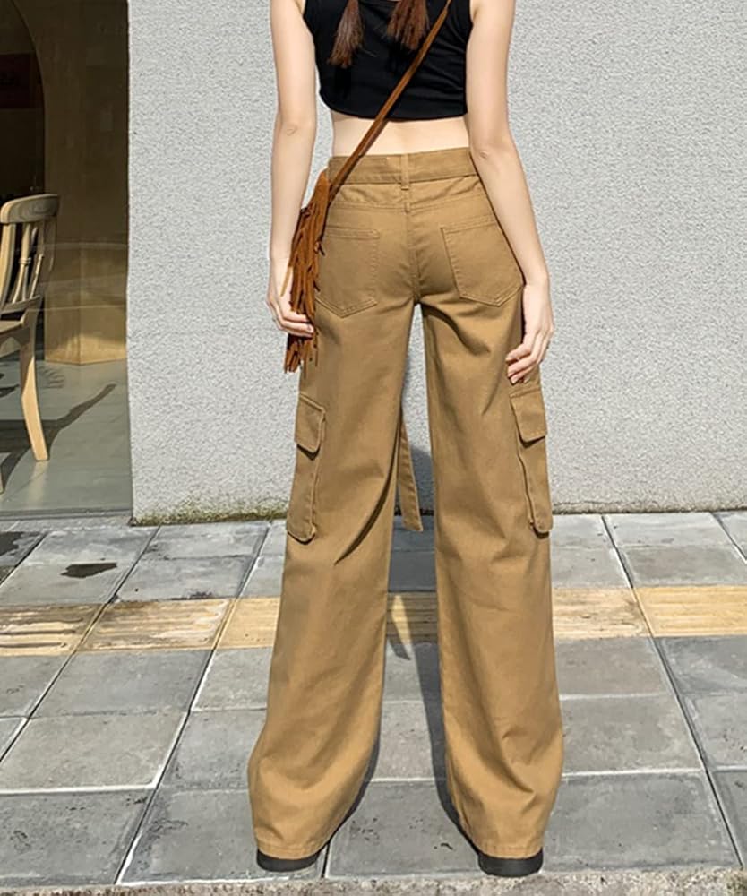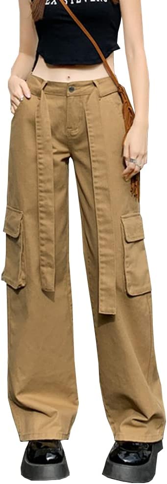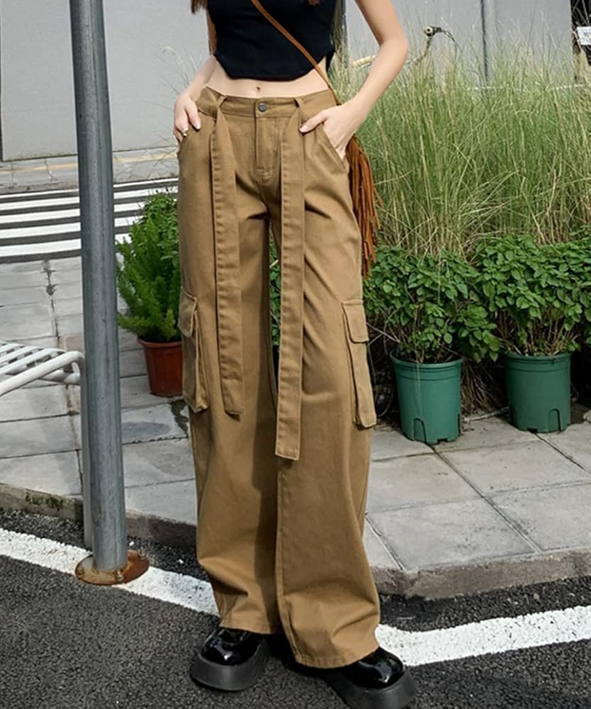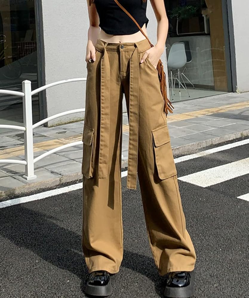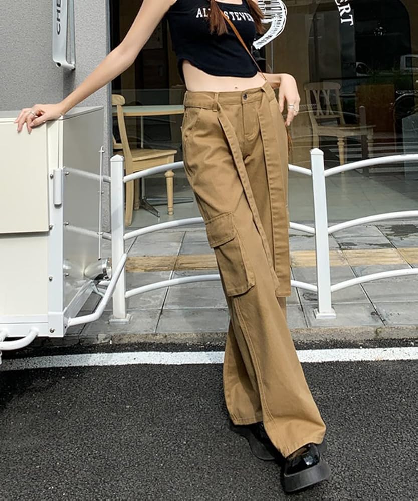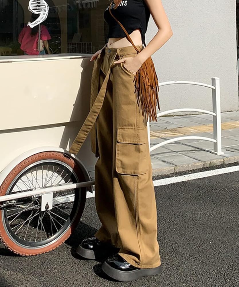 المواد: سراويل كارجو نسائية عالية الارتفاع كاجوال فضفاضة تناسب Harajuku Vintage Y2K فضفاضة، مصنوعة من مزيج القطن، ناعمة ومريحة، صديقة للبشرة فضفاضة واسعة الساق طويلة 90s الفتيات السراويل