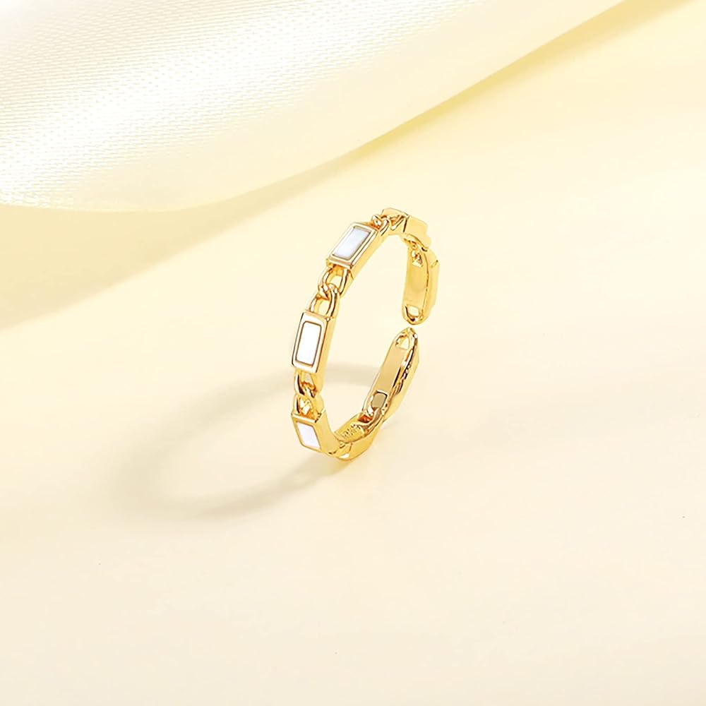 [مفتوح بسيط] يتميز هذا الخاتم بتصميم مقصوص من عرق اللؤلؤ الأبيض مع الذهب، ويمكن ارتداؤه بمفرده أو مكدسًا لإضافة لمسة أنيقة لمظهرك.