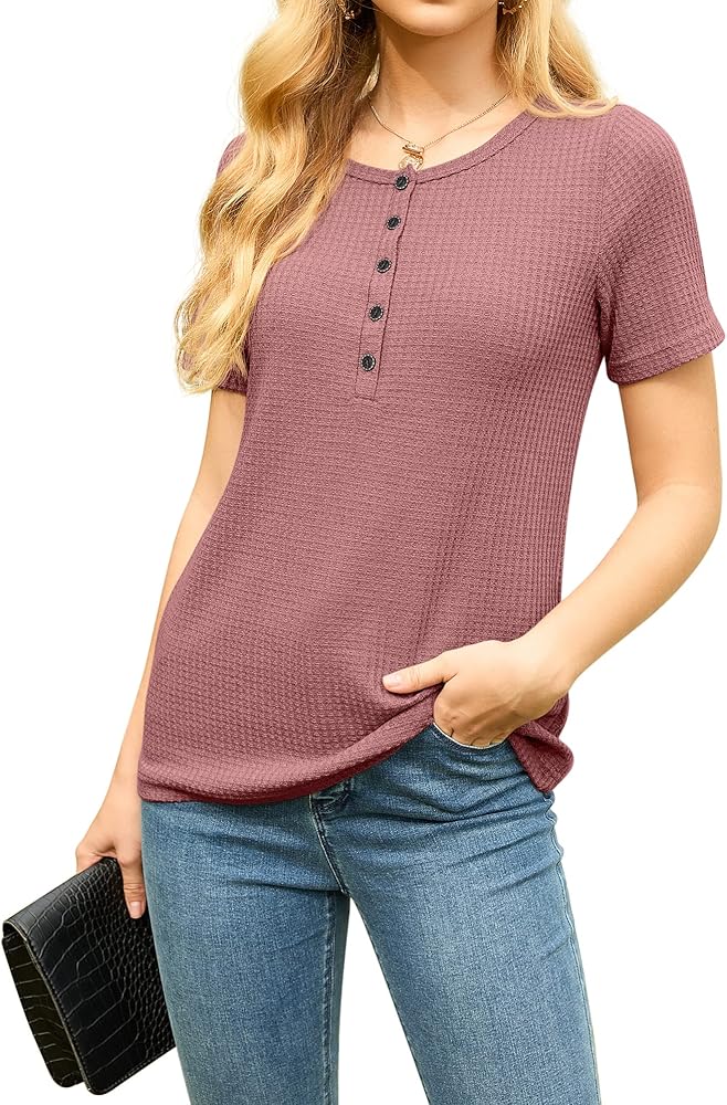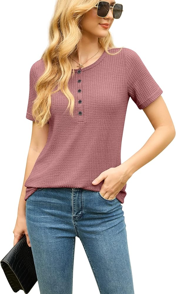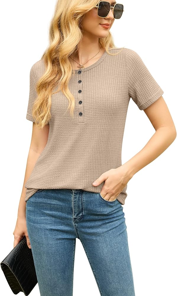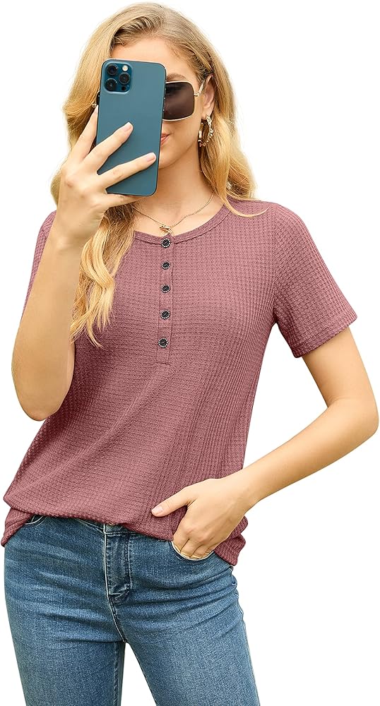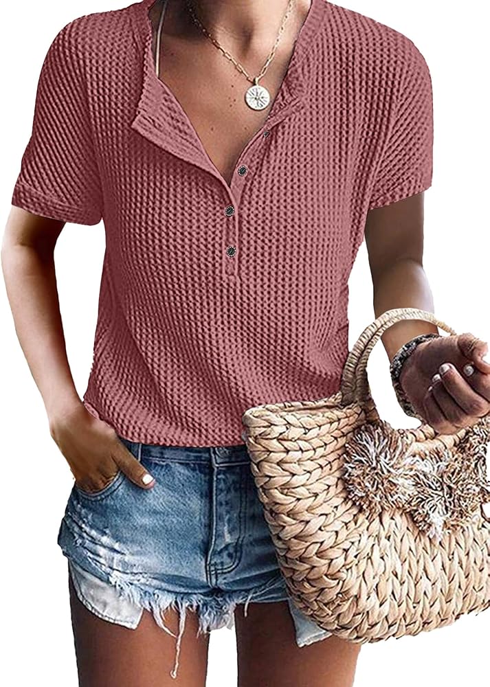 • [تسليط الضوء على هذه القمصان ذات الأزرار السفلية للسيدات] قميص علوي من نسيج وافل، رقبة على شكل حرف V قابلة للتعديل / رقبة دائرية، أزرار لأعلى/أسفل، أكمام قصيرة، طراز كاجوال، مقاس فضفاض، خفيف الوزن، قمصان هينلي. تمنحه الرقبة على شكل حرف V والمقاس الفضفاض مظهرًا أنيقًا وجذابًا. التصميم ذو الأزرار القابلة للتعديل هو خيارك الأفضل للحياة الكاجوال، يمكنك تعديل النمط الكاجوال أو النمط المثير حسب تفضيلاتك.