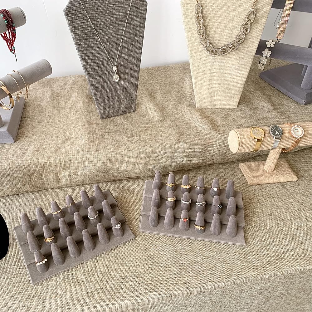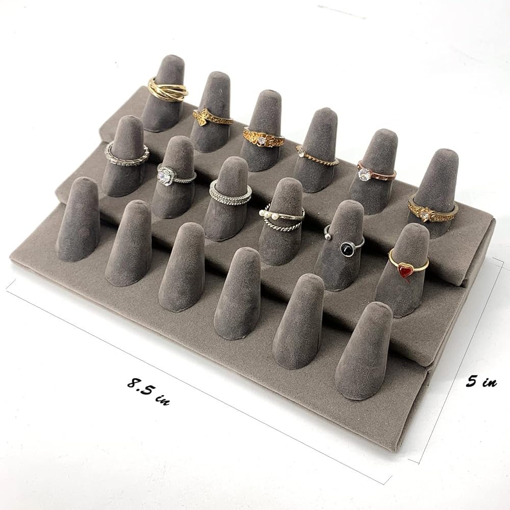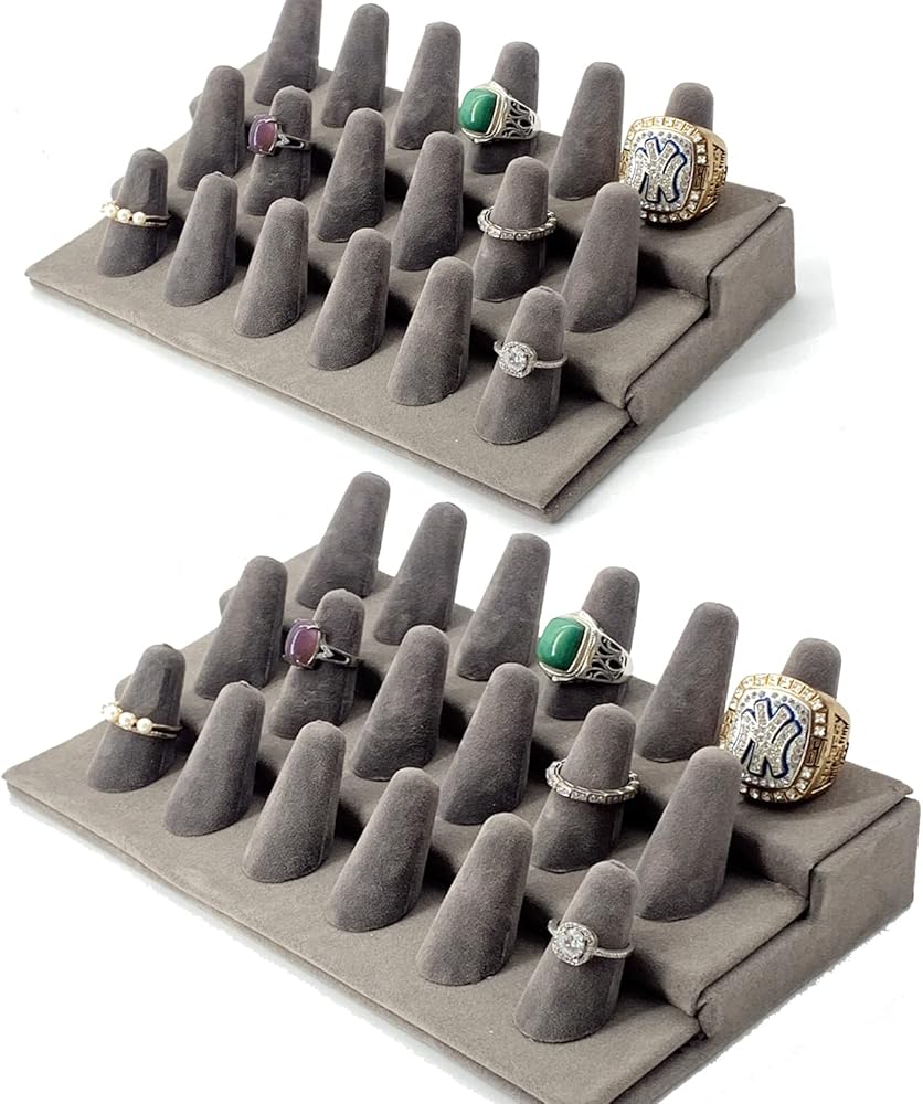 CODANT 3 Tier Gray Velvet 18 Finger Ring Display, 18 Slot Grey Ring Displays for Selling,Tabletop Ring Holder for Jewelry(set of 2)