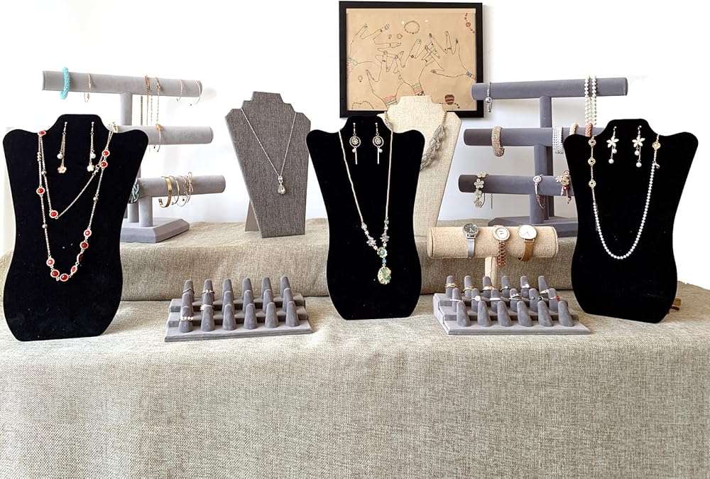 • محمول - يبلغ مقاس كل حامل عرض مخملي رمادي 8.5 طول × 5 عرض × 2.5 ارتفاع، إجمالي قطعتين. سهل الحمل والتخزين، مثالي لمتاجر البيع بالتجزئة أو المعارض التجارية أو مراكز التسوق أو خزانات الملابس في منزلك.
