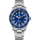 صناعة متقنة: مصنوعة من الفولاذ المقاوم للصدأ المقاوم للتآكل وكريستال الياقوت المقاوم للخدش، تتحمل ساعة اليد الخاصة بنا المتطلبات الصارمة للاستكشاف تحت الماء مع الحفاظ على جمالياتها المصقولة.