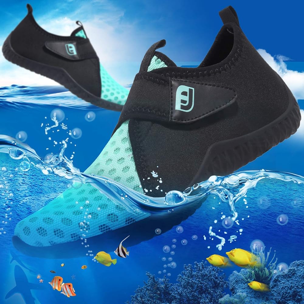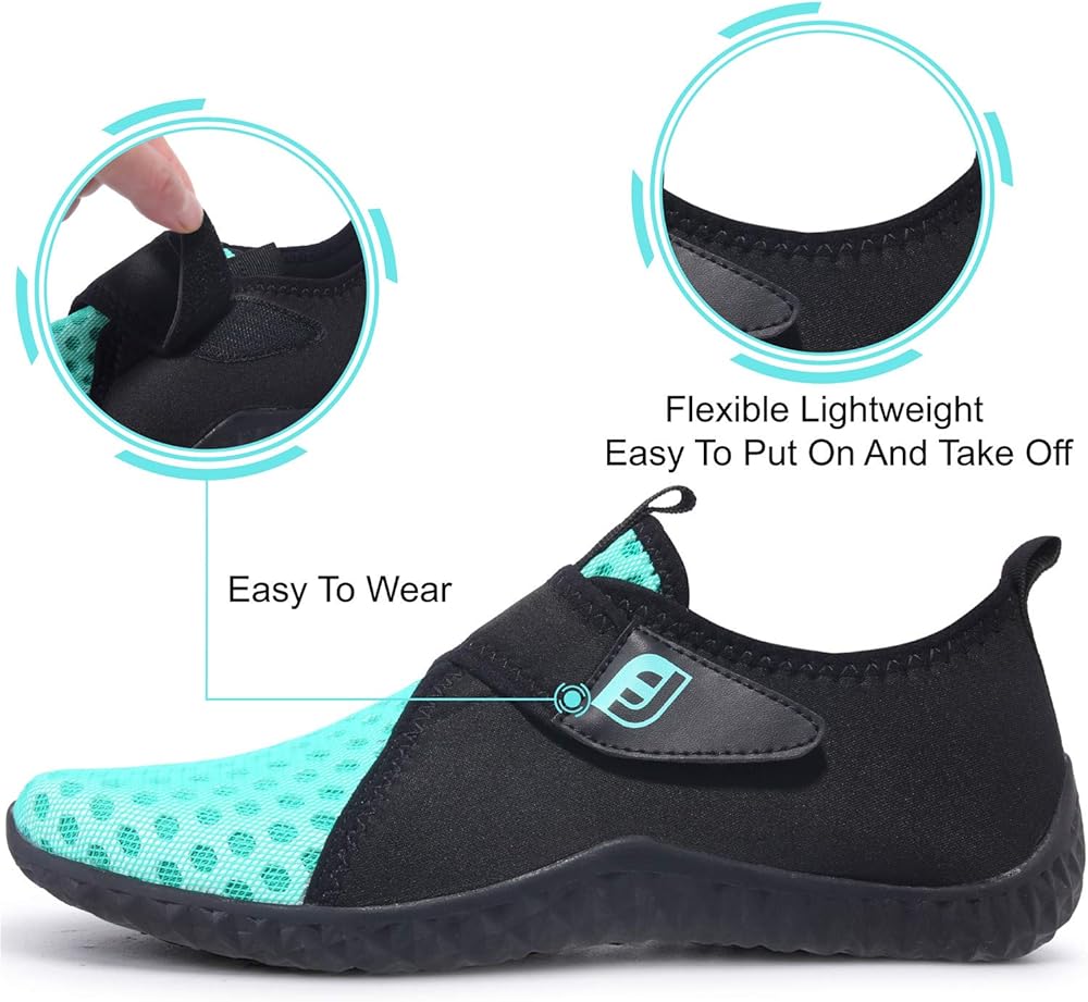 أشرطة مطاطية وقفل برباط أو خطاف وحلقة: هذه الأحذية الرياضية المائية مزودة بأشرطة مرنة وقفل برباط أو تصميم بخطاف وحلقة، وفقًا لعرض قدمك، قم بتعديل الحذاء بسرعة، وسهل الارتداء والخلع.