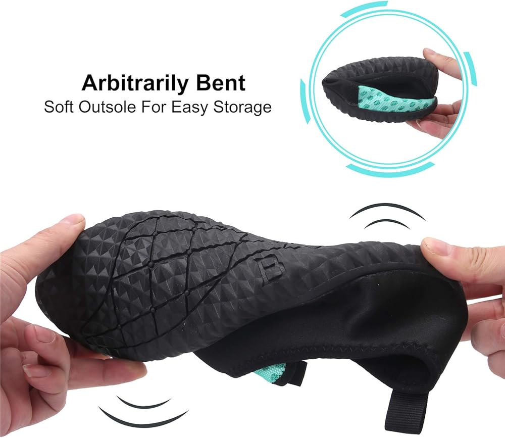 خفيفة الوزن وقابلة للحمل: جزء علوي ناعم ونعل مطاطي لهذه الأحذية المائية، خفيفة الوزن ويمكن طيها بسهولة، مريحة جدًا للسفر والتخزين.