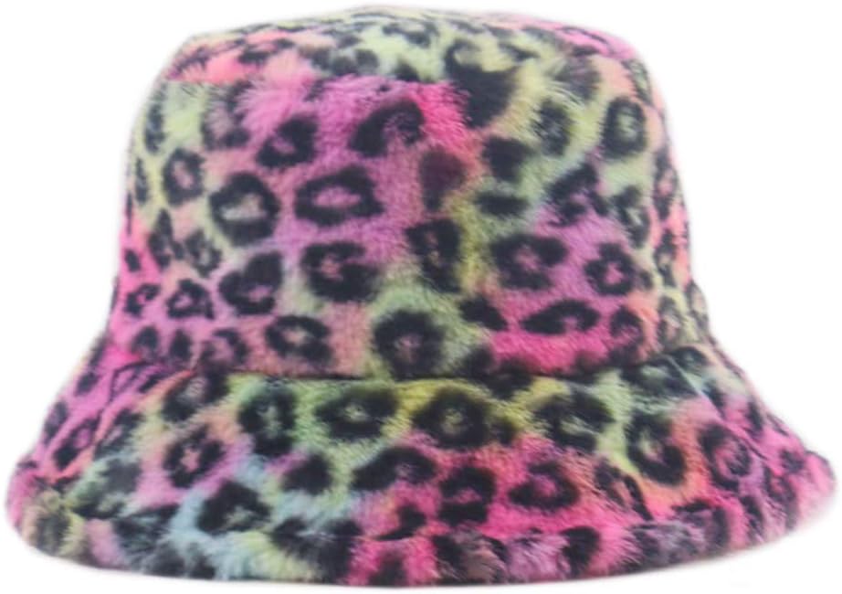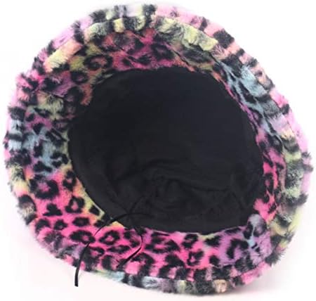 قبعة باكيت نسائية من الفرو الصناعي بطبعة جلد الفهد مصبوغ بالربط بالوان قوس قزح، قبعة زغبية للتدفئة في الشتاء للصياد