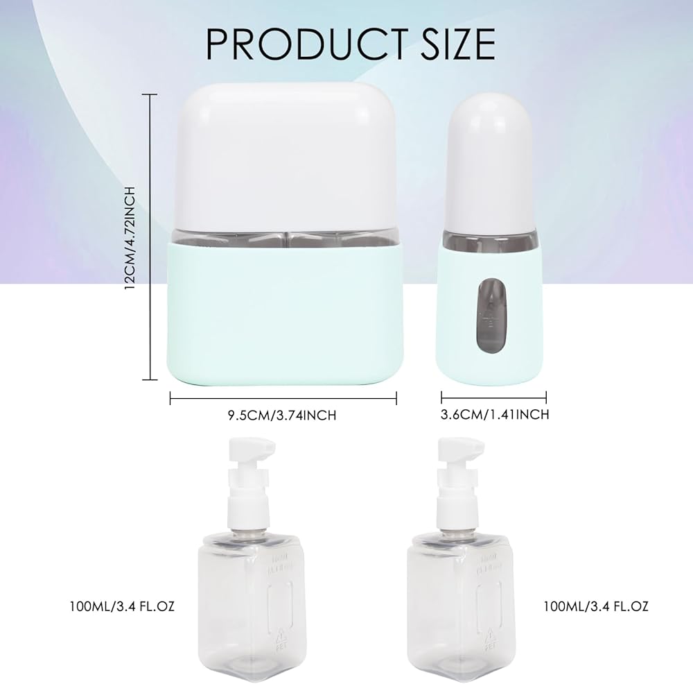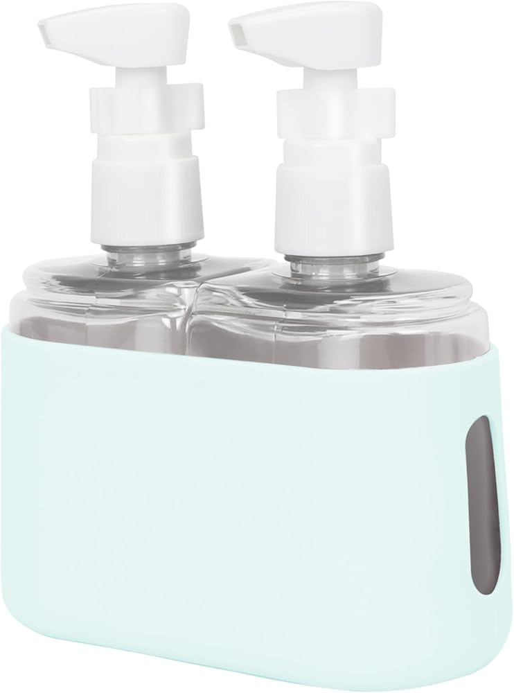 زجاجات السفر لمستلزمات الزينة - زجاجات شامبو وبلسم للسفر لمستلزمات الزينة، حاويات سفر لزجاجات أدوات الزينة 2 في 1، حامل سائل لمضخة أدوات الزينة بحجم مناسب للسفر - أزرق