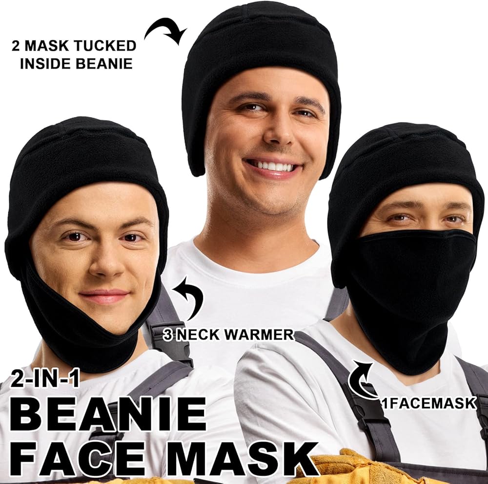 مساعد جيد في الشتاء: يعتمد غطاء الرأس للرجال الشتوي هذا على تصميم 2 في 1، والذي يجمع بين القبعة والقناع، والذي لا يمكنه فقط حجب الرياح الباردة لك، ولكن أيضًا إدخاله في القبعة لزيادة سمك القبعة عندما لا تحتاج إلى استخدام القناع