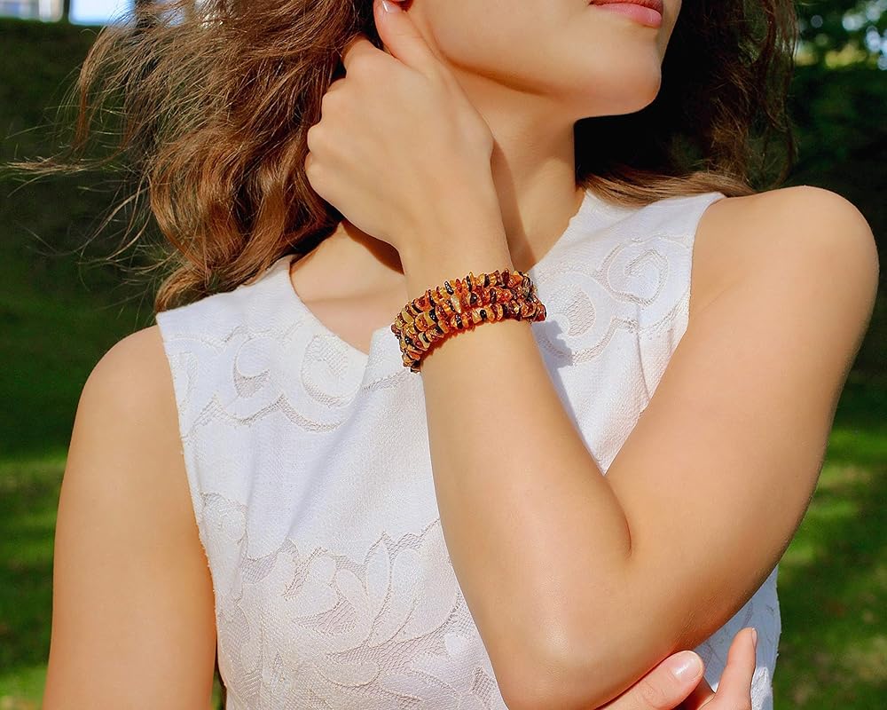UNIQUE PRECIOUS STONE BRACELET FOR WOMEN, TEENS & GIRLS. Wearing this handmade genuine Baltic amber bracelet, you'll instantly get more compliments. No wonder, Baltic amber stone is considered superior to other tree resins, known for its high quality and value.