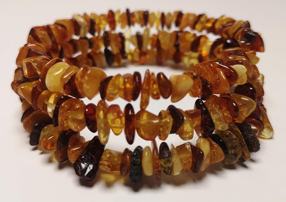 الأحجار الكهرمانية، المعروفة أيضًا بالذهب الشمالي، والتي تغلف تاريخ الشجرة التي جاءت منها. يتأثر راتنج الشجرة بقوى الطبيعة لدرجات الحرارة القصوى، والتربة المتغيرة والنباتات الأخرى والماء. ونتيجة لذلك، حصل كل حجر على شكله وملمسه ولونه الفريد الذي يختلف من ظلال العسل المبيَّض إلى اللون الأصفر المطفي أو الداكن. لذلك، يمكن أن يبدو مزيج الأحجار على سوارك مختلفًا عن تلك الموجودة في الصورة.