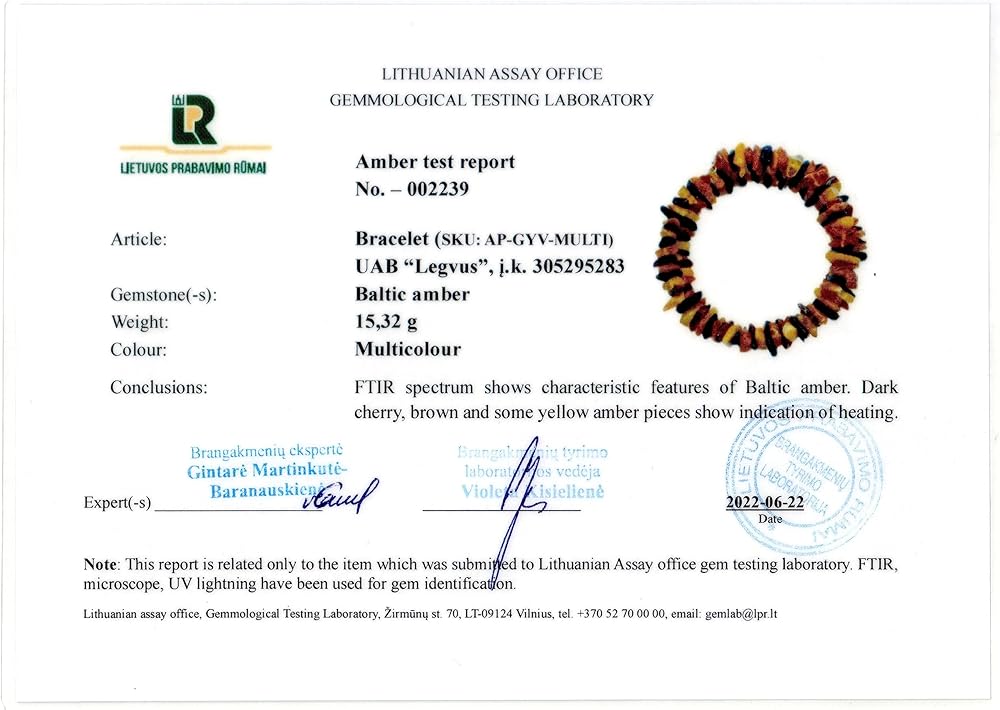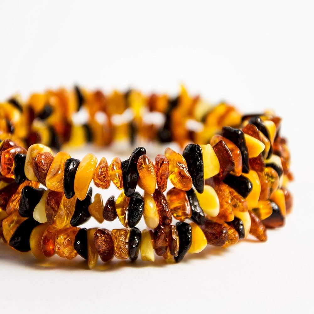 سوار كهرماني البلطيقي الأصلي يمكن ارتداؤه وإزالته بسهولة. بدون مشبك، جميع الأحجار الكهرمانية موجودة على سلك يحافظ على الشكل. يسمح هذا للسوار بالتمدد من 6.3 انش إلى 7 انش.