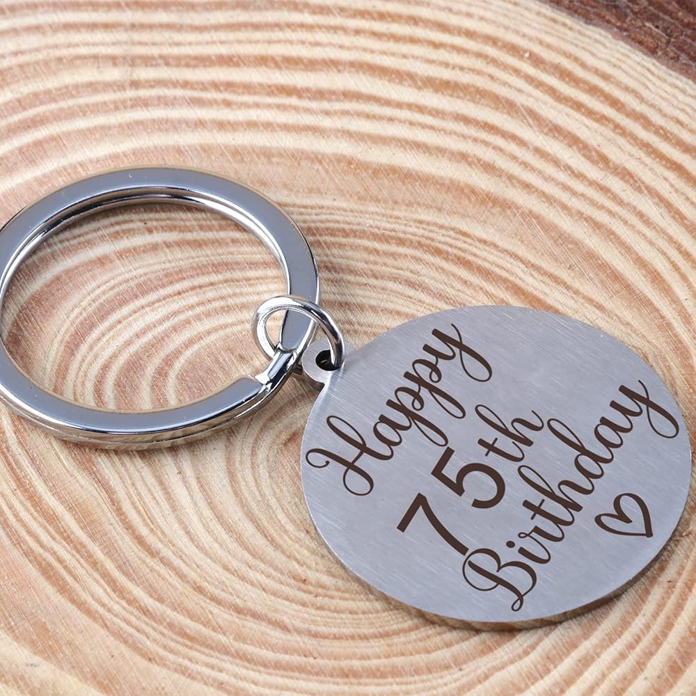 سلسلة مفاتيح هدايا عيد الميلاد الخامس والسبعين للنساء والرجال بعمر 75 عامًا هدايا عيد الميلاد 75 سنة للرجال والنساء هدايا عيد ميلاد سعيد 75 للرجال، سلسلة مفاتيح منقوشة على الوجهين، فضي، S, فضي