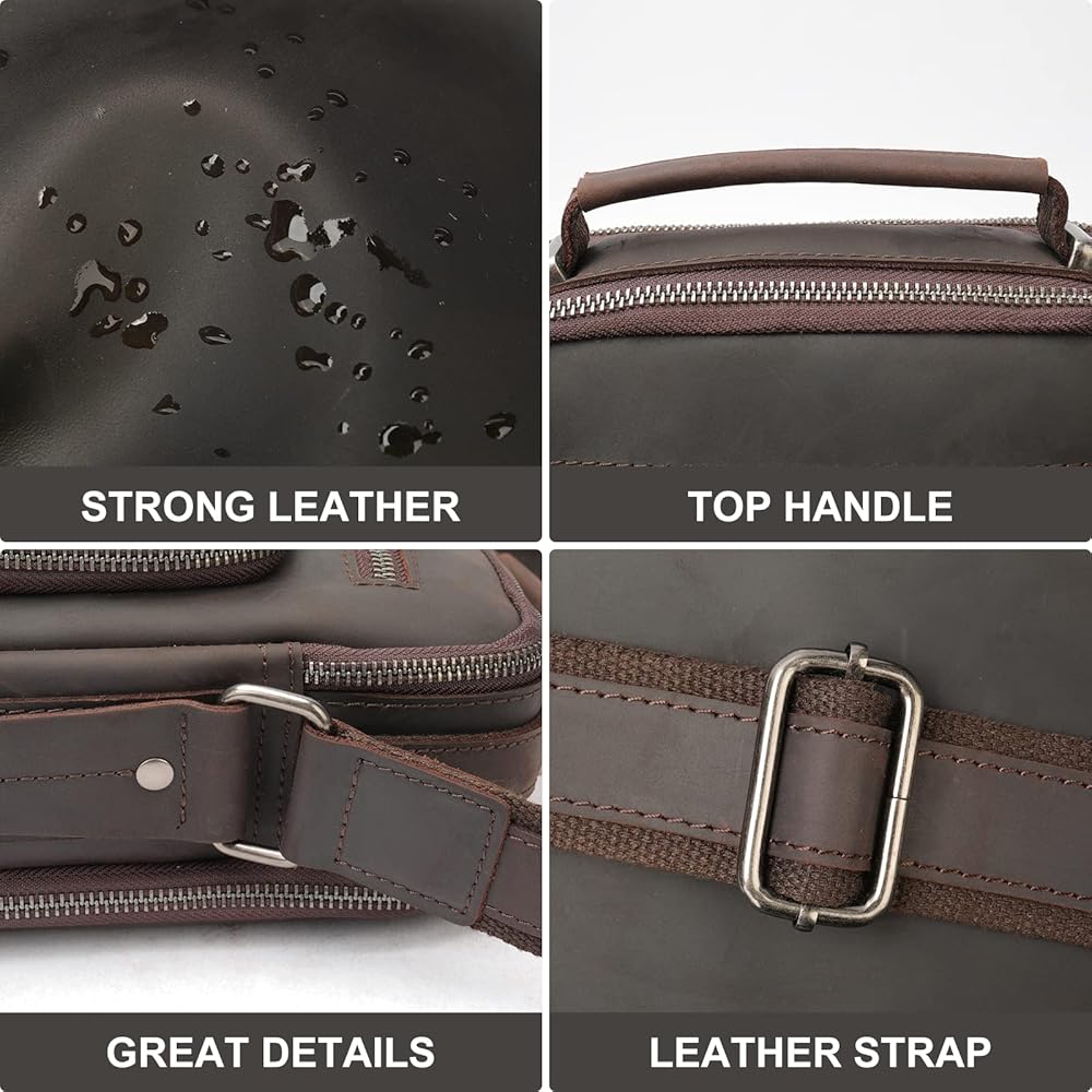 محفظة رجالية من جلد البقر من شركة نيوك، حقيبة كروسبودي من الجلد الطبيعي للرجال حقائب سفر الكتف مع حزام جلدي ومقبض علوي
