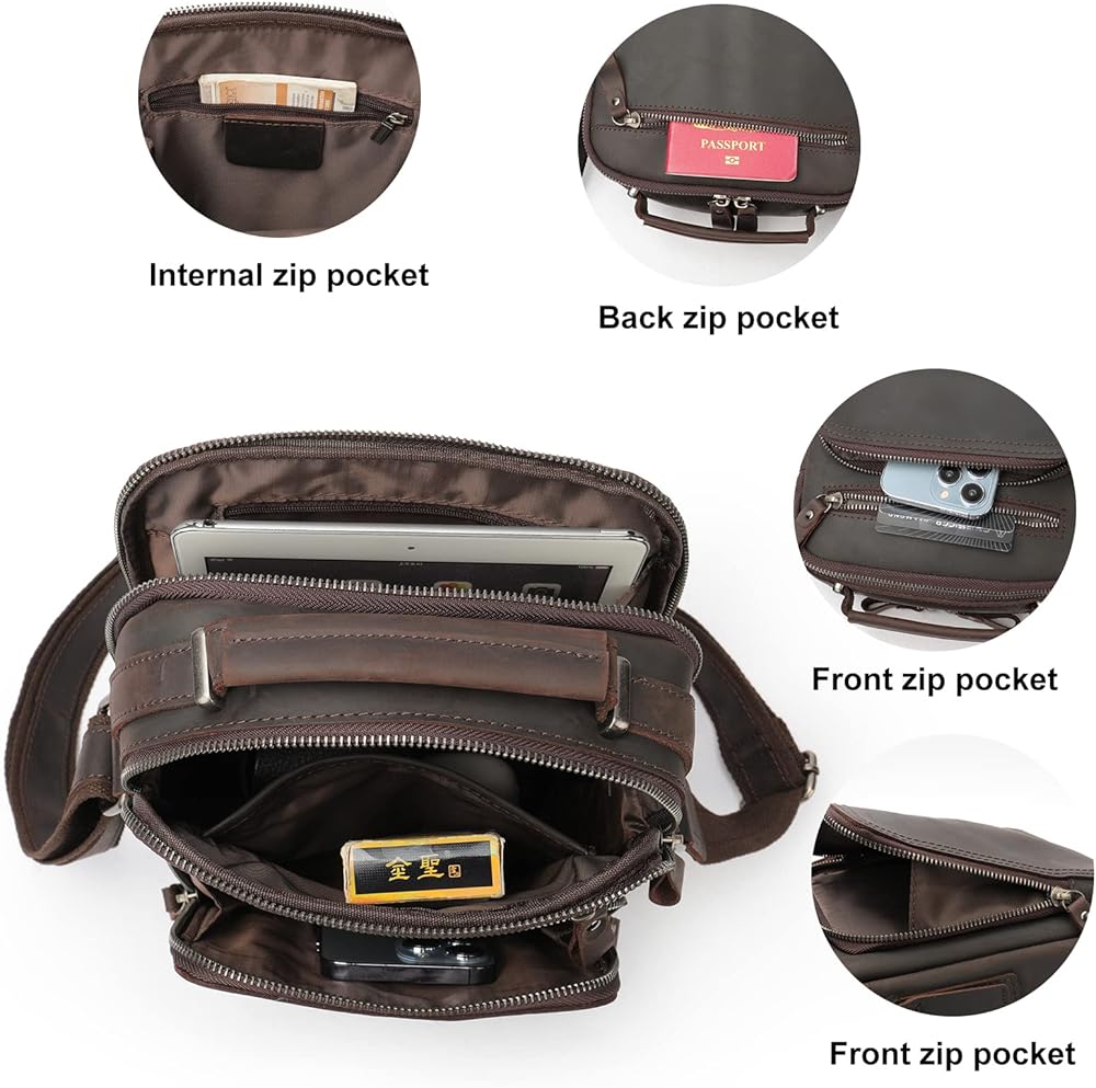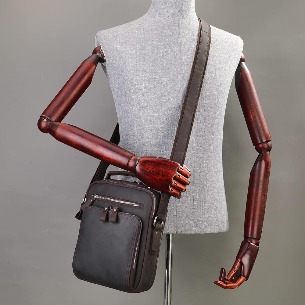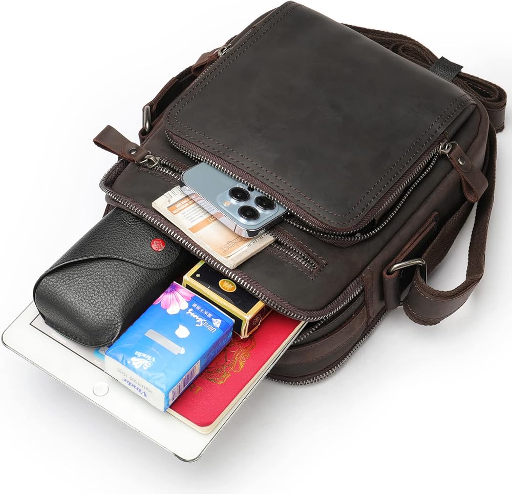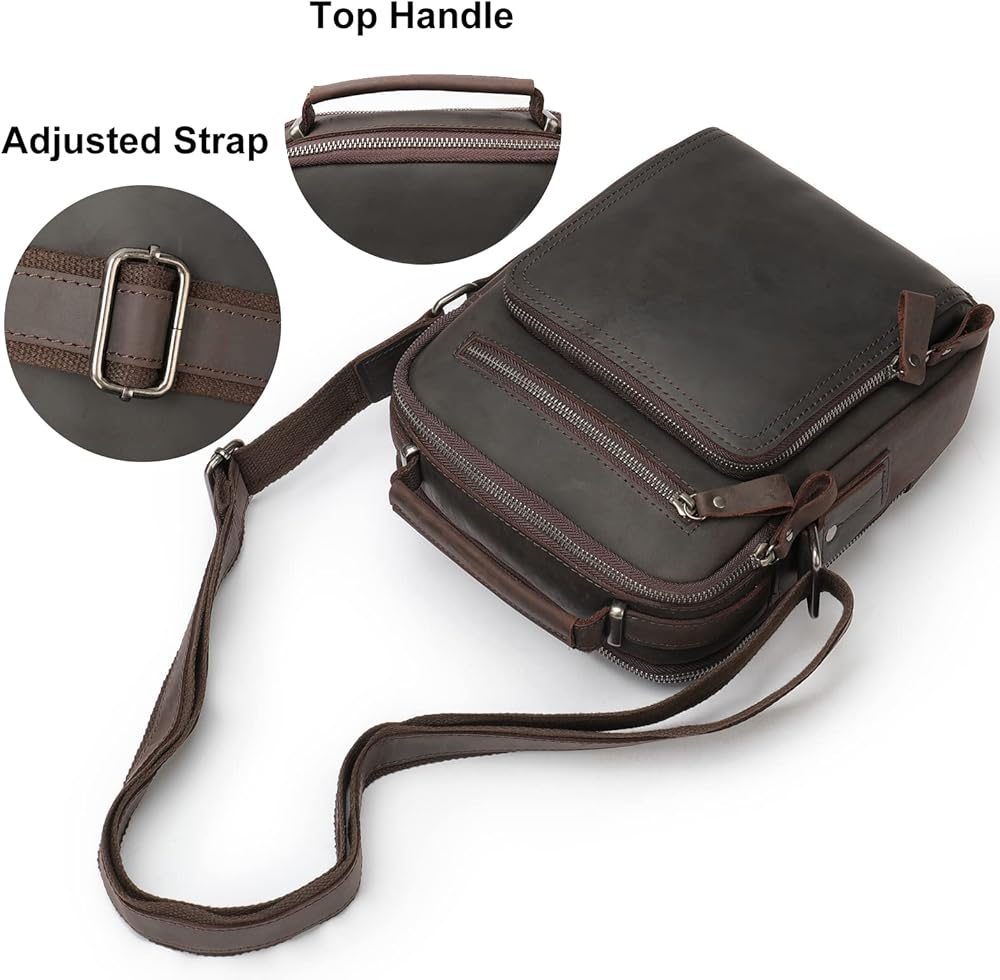 محفظة رجالية من جلد البقر من شركة نيوك، حقيبة رسول صغيرة حقيبة كروس للرجال للسفر حقائب الكتف مع حزام جلدي ومقبض علوي