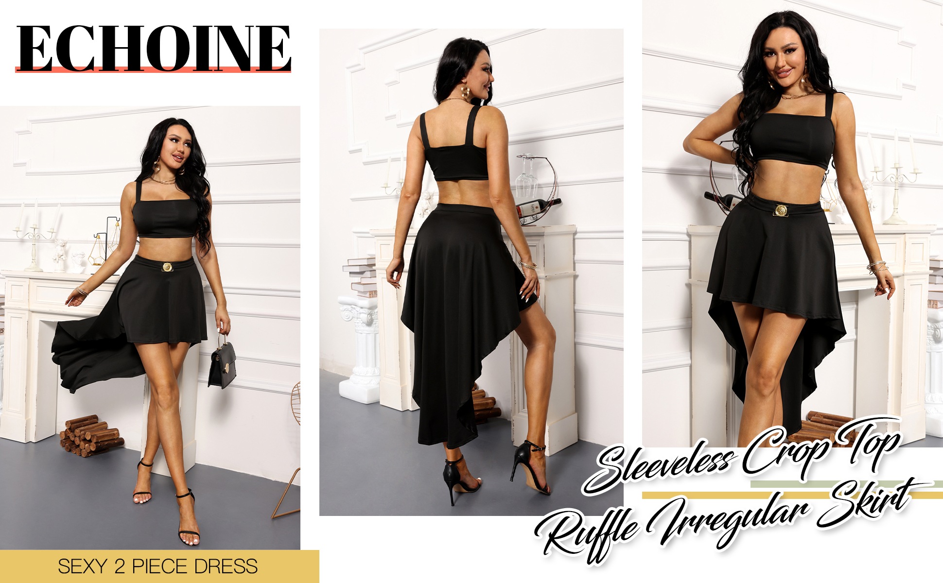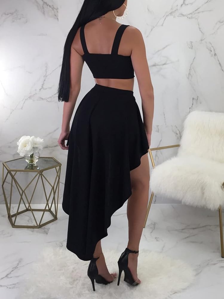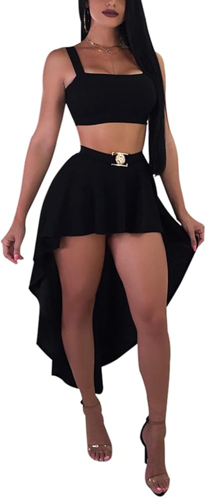 - المميزات: لون موحد، قميص قصير بدون أكمام وتنورة بحاشية عالية ومنخفضة. الملابس يمكن أن تجعلك تبدو أكثر جاذبية