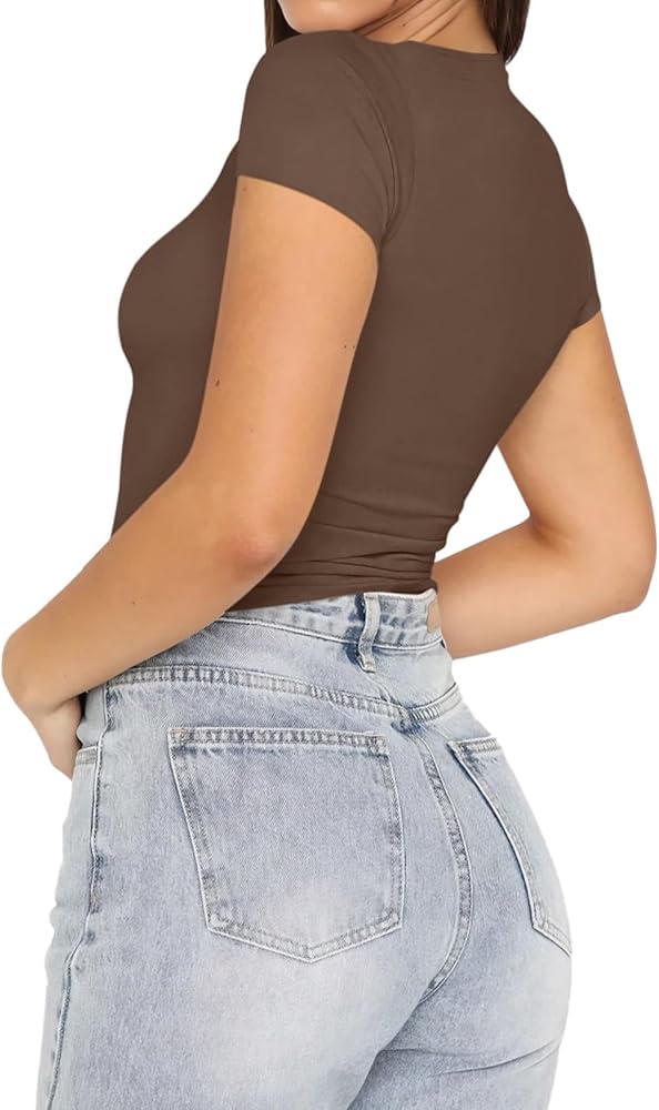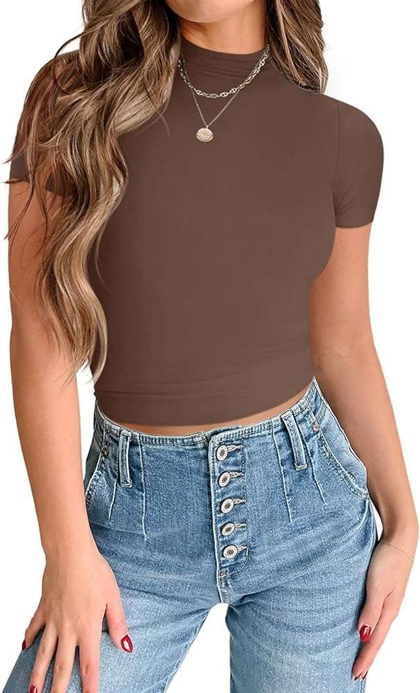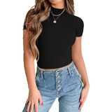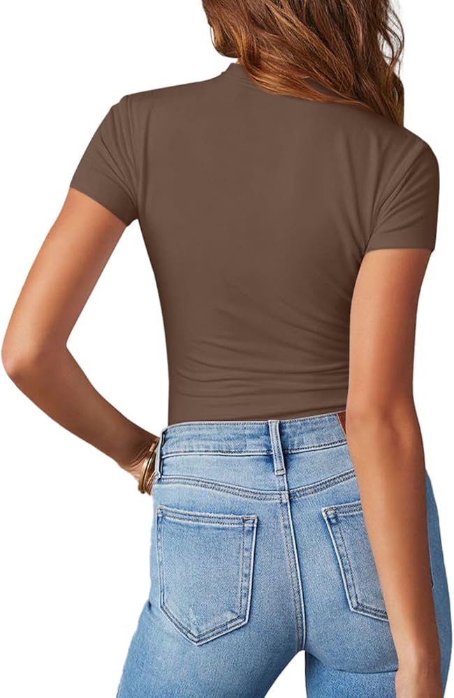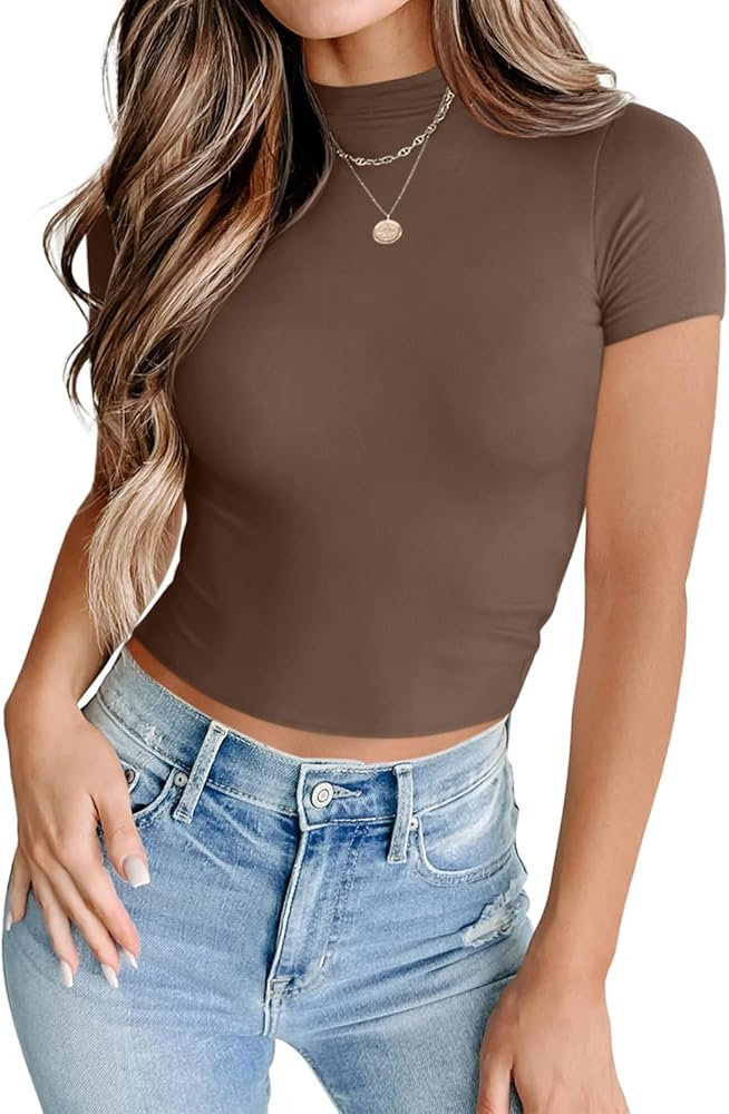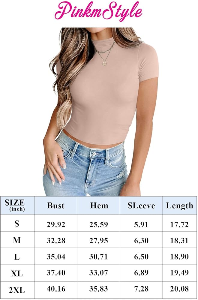 ♥ تتميز هذه التي شيرتات القصيرة للنساء بأكمام قصيرة ورقبة وهمية، ويضيف تصميم الرقبة الوهمية لمسة أنيقة، وهو خط رقبة جذاب للغاية لأي مجوهرات. يصل طول القصير إلى زر البطن مباشرة، ويناسب جسمك بشكل لطيف ويبرز جسمك!
