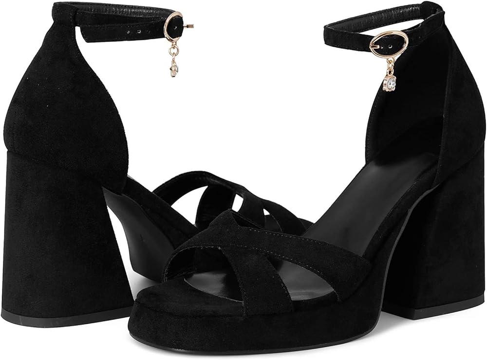 زخرفة أنيقة: هذا الزوج من الأحذية الرسمية يكمله الكريستال على الإبزيم، مما يضيف الأناقة والسحر. كما يوفر حزام الكاحل ملاءمة ومرونة مريحة.
