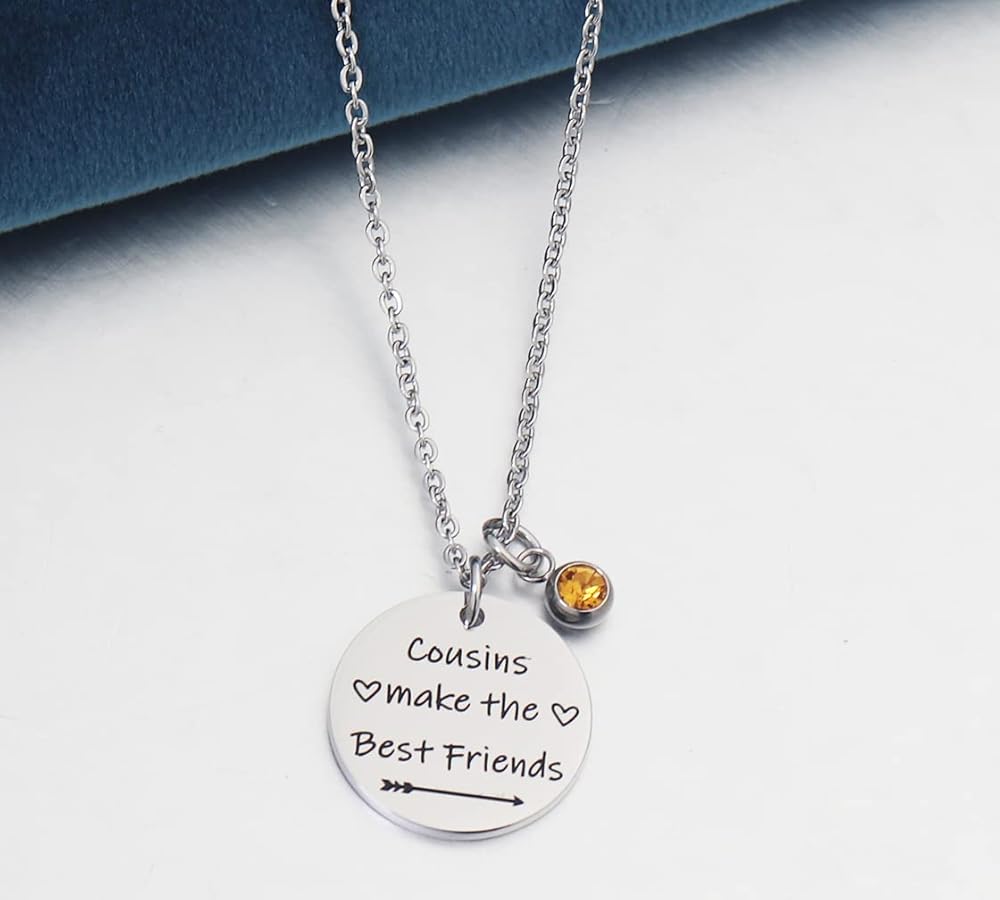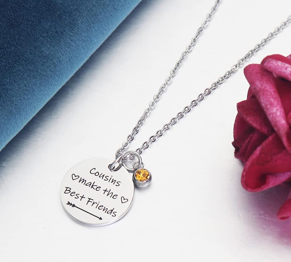 😊Celebrate the unique bond between you and your cousins and show them how thankful you are to have them in your life with this beautiful birthstone cousin necklace.