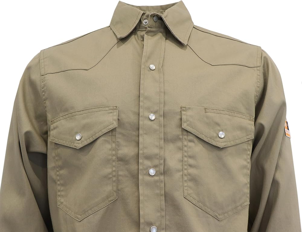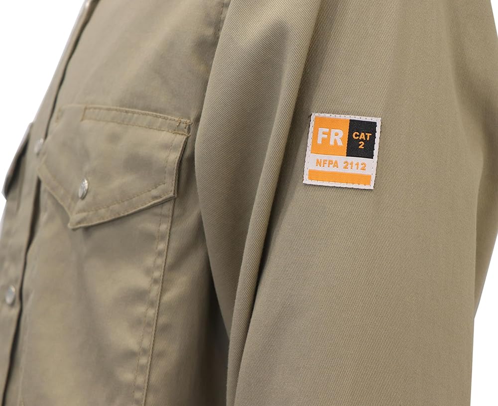 معيار مقاومة الحريق: تم تصميم قميص العمل للرجال المصنوع من القطن بنسبة 100% بسعة 6.5 اونصة لتوفير حماية مثالية مقاومة للحريق. يلبي معايير NFPA70E وNFPA2112، مما يضمن السلامة في البيئات عالية الخطورة.
