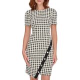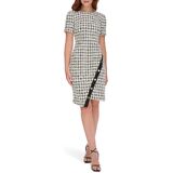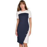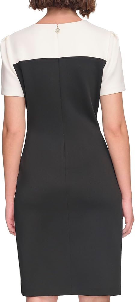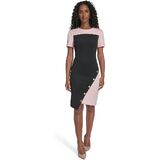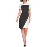 This Tommy Hilfiger Women's Scuba Crepe is a Structured Colorblock Short Sleeve Asymmentrical Sheath