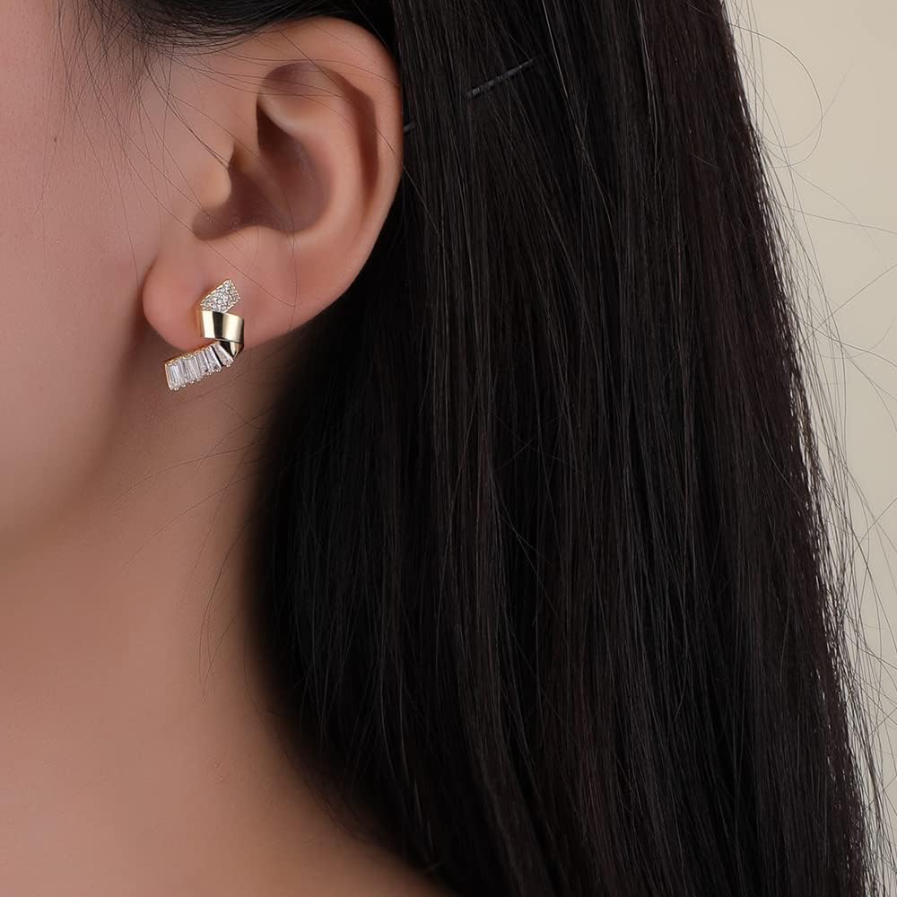 • 【Spiral Ribbon Stud Earrings】The chic and simple design of the stud earrings, with a dreamy spiral downward, is set with square zircon stones that shine like mirrors, helping you to create a refined everyday look.