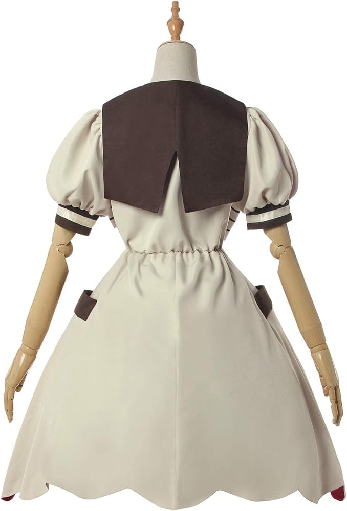 • زي TBHK Yashiro التنكري المحدث بتصميم بدلة البحارة الكلاسيكية، الفستان بأكمله بني فاتح، أكمام منتفخة على طراز لوليتا تبدو لطيفة، ربطة عنق مخططة كبيرة على طراز البحارة على المقدمة، فستان متوسط ​​الطول بحاشية مموجة على شكل حرف A