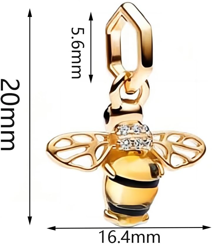ZURWTCH Gold Bee Sparkling Dangle Charm Fit Women Bracelet Necklaces Fashion Gifts 925 Sterling Silver DIY Jewelry, Non-Precious Metal, Zircon