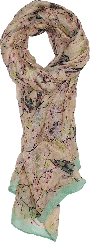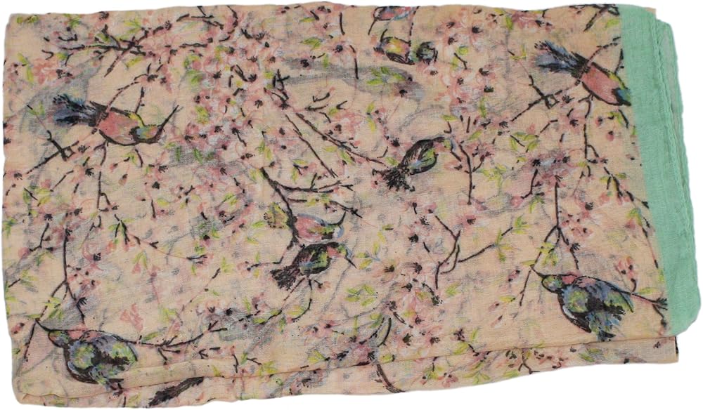 Softly shaded allover bird and cherry blossom pattern scarf.