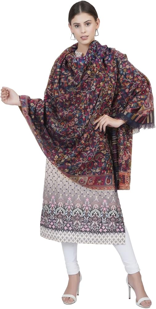 • Base Fabric is Pure Wool which is Warm, Cozy & Light, with Cotton Threads Used for Multi Color Kani Design.