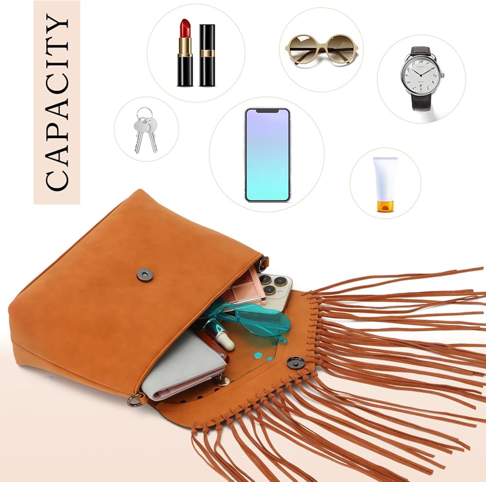 • عملي وصغير الحجم: الحجم--10.6 بوصة × 3.5 بوصة × 7.1 بوصة (الطول × العرض × الارتفاع). تم تصميم هذه المحفظة ذات الشراشيب لتناسب ضرورياتك، بما في ذلك الهواتف المحمولة، وأجهزة iPad mini، والمفاتيح، وبطاقات الائتمان، والهوية، وجواز السفر، ومستحضرات التجميل. كما أنها تحتوي على مساحة تخزين داخلية واحدة للبطاقات وجيب خلفي بسحاب، مما يوفر مساحة تخزين واسعة لمقتنياتك الثمينة.