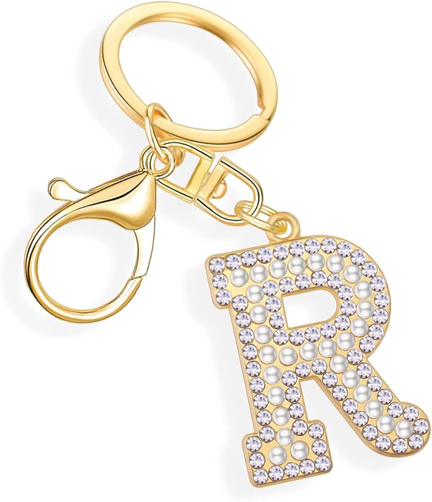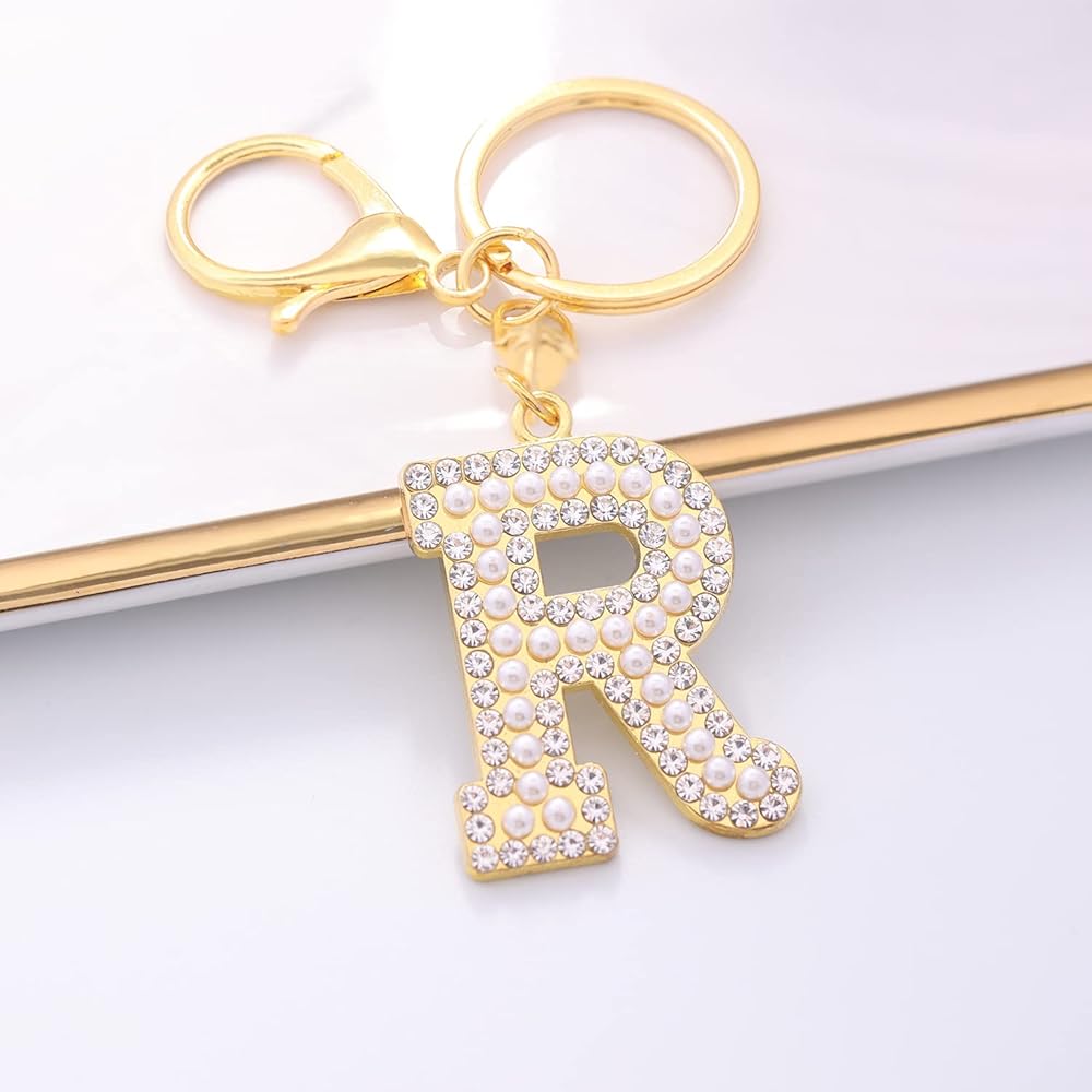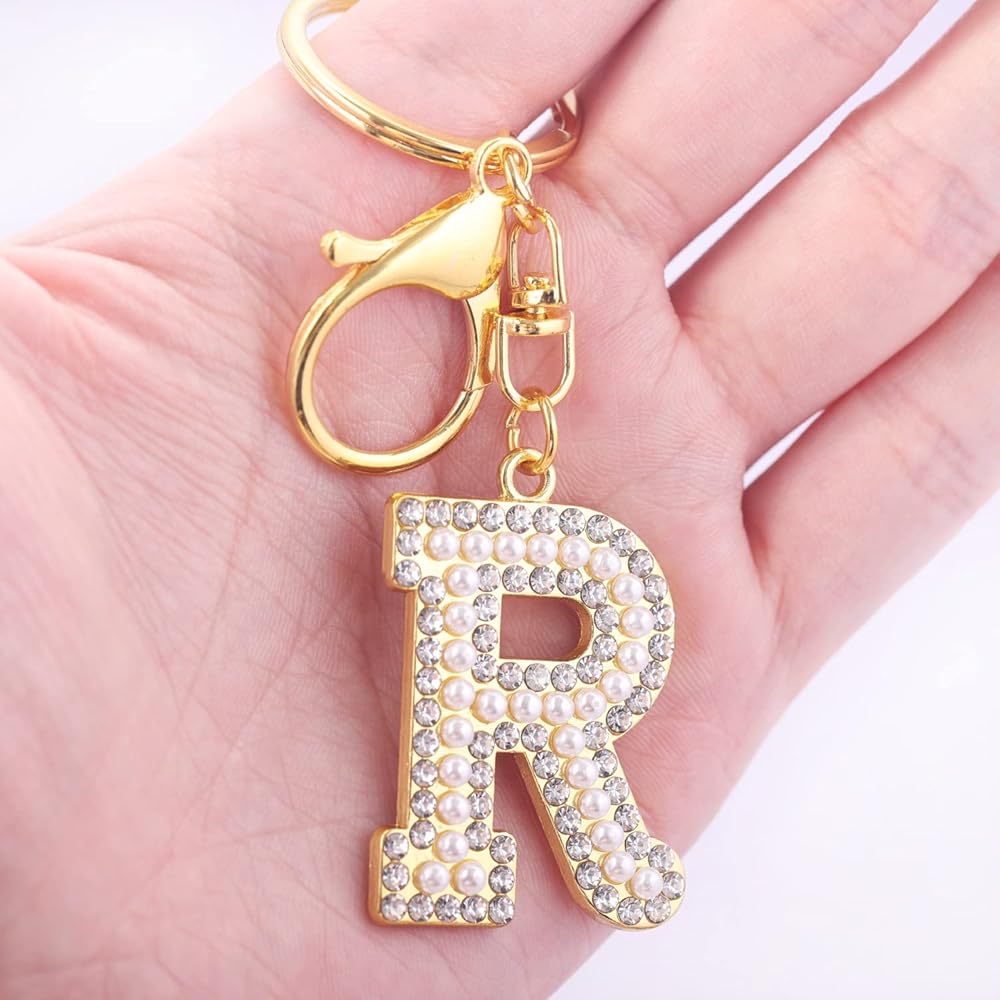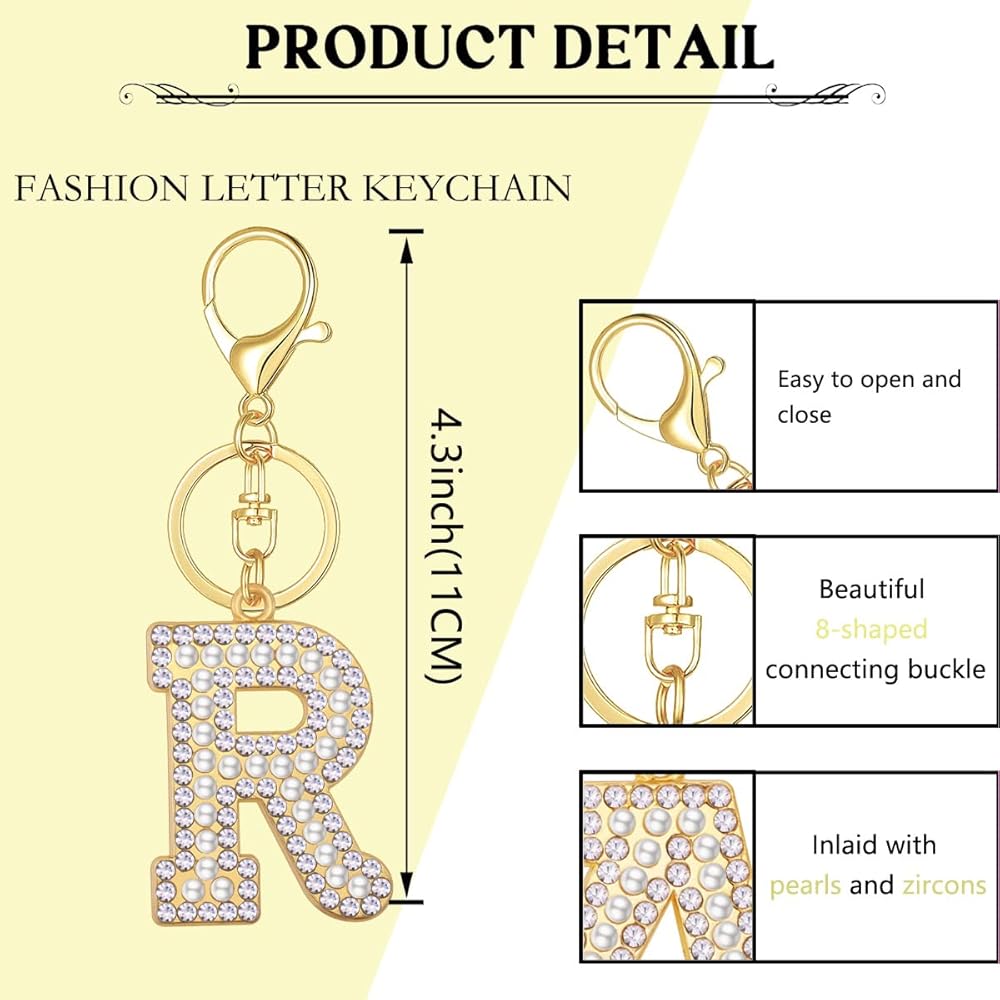The letter key chain is made of Thicken Alloy, Highly Polished Rhinestone and Artificial Pearl.