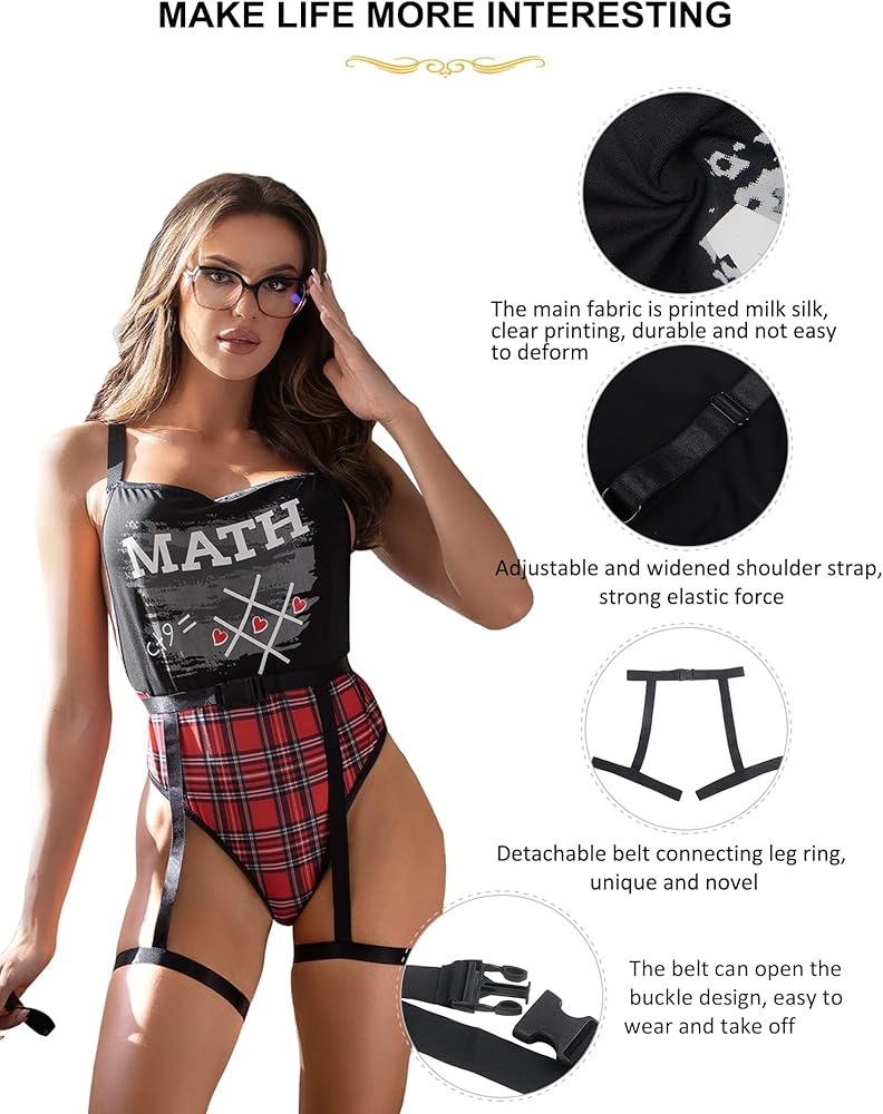 • 【تصميم فريد】-- يمنحك التصميم ذو النمط الموحد حضورًا قويًا أمام شريكك. يساعد حزام الخصر على إبراز قوامك، وتضيف حلقات الساق لمسة إضافية من الجاذبية إلى الزي.