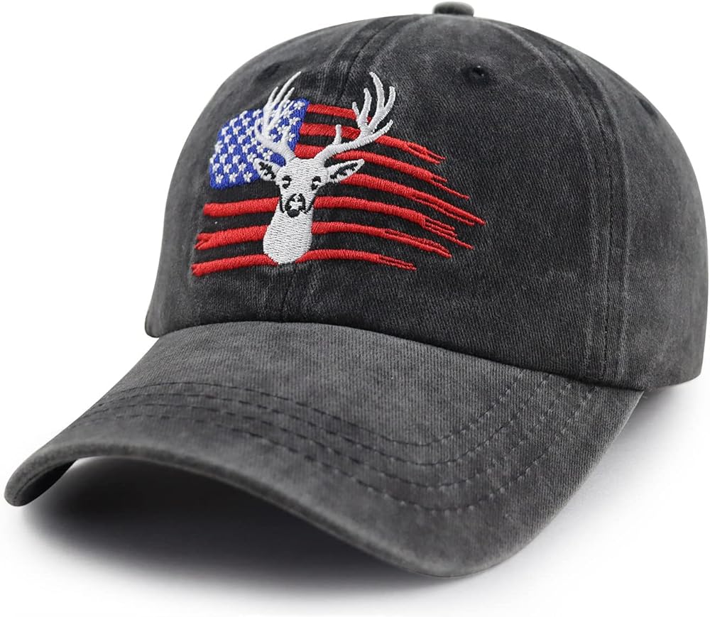 قبعات الغزلان العلم الأمريكي المطرزة للرجال والنساء، قبعة بيسبول مضحكة قابلة للتعديل للصيد في الهواء الطلق
