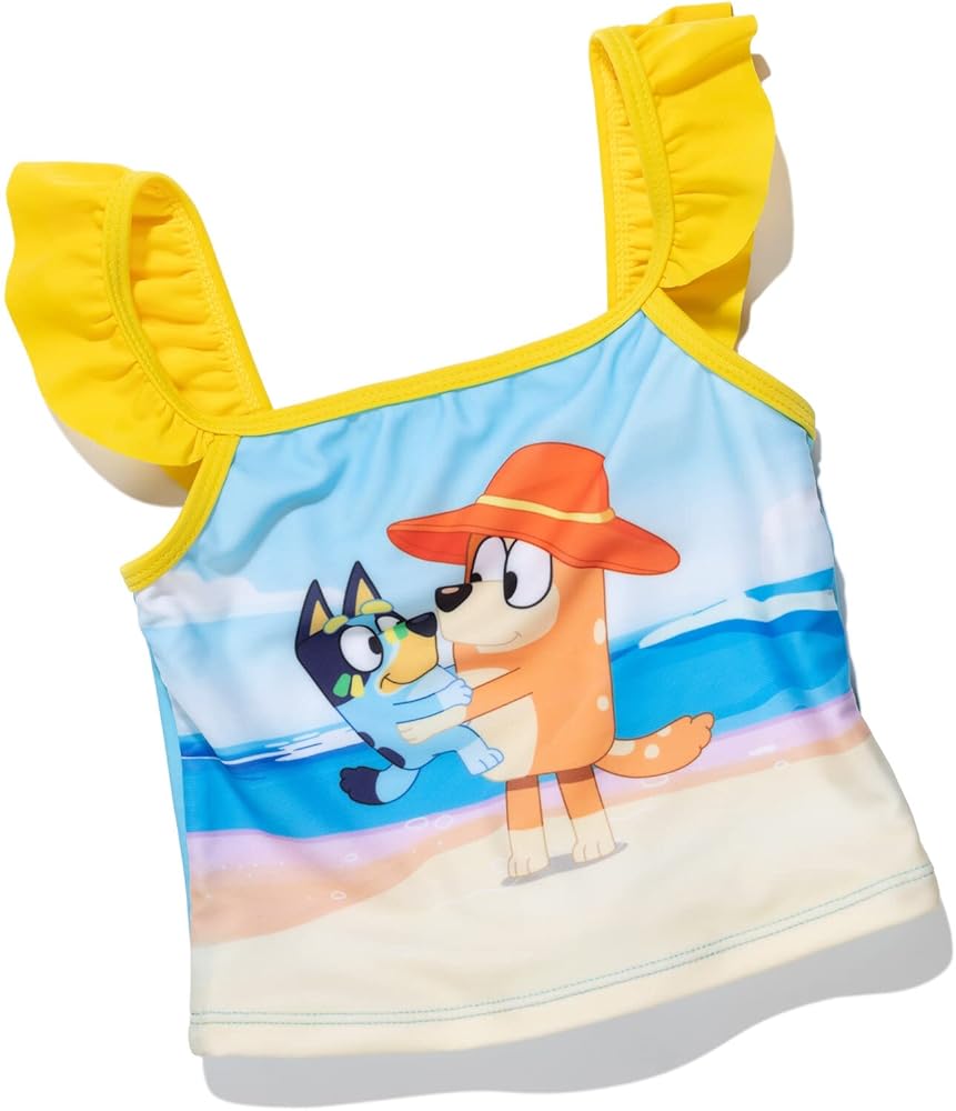 ملابس سباحة علوية لطيفة وأنيقة للفتيات الصغيرات من Bluey مرخصة رسميًا وجزء سفلي لطيف وأنيق بتغطية كاملة